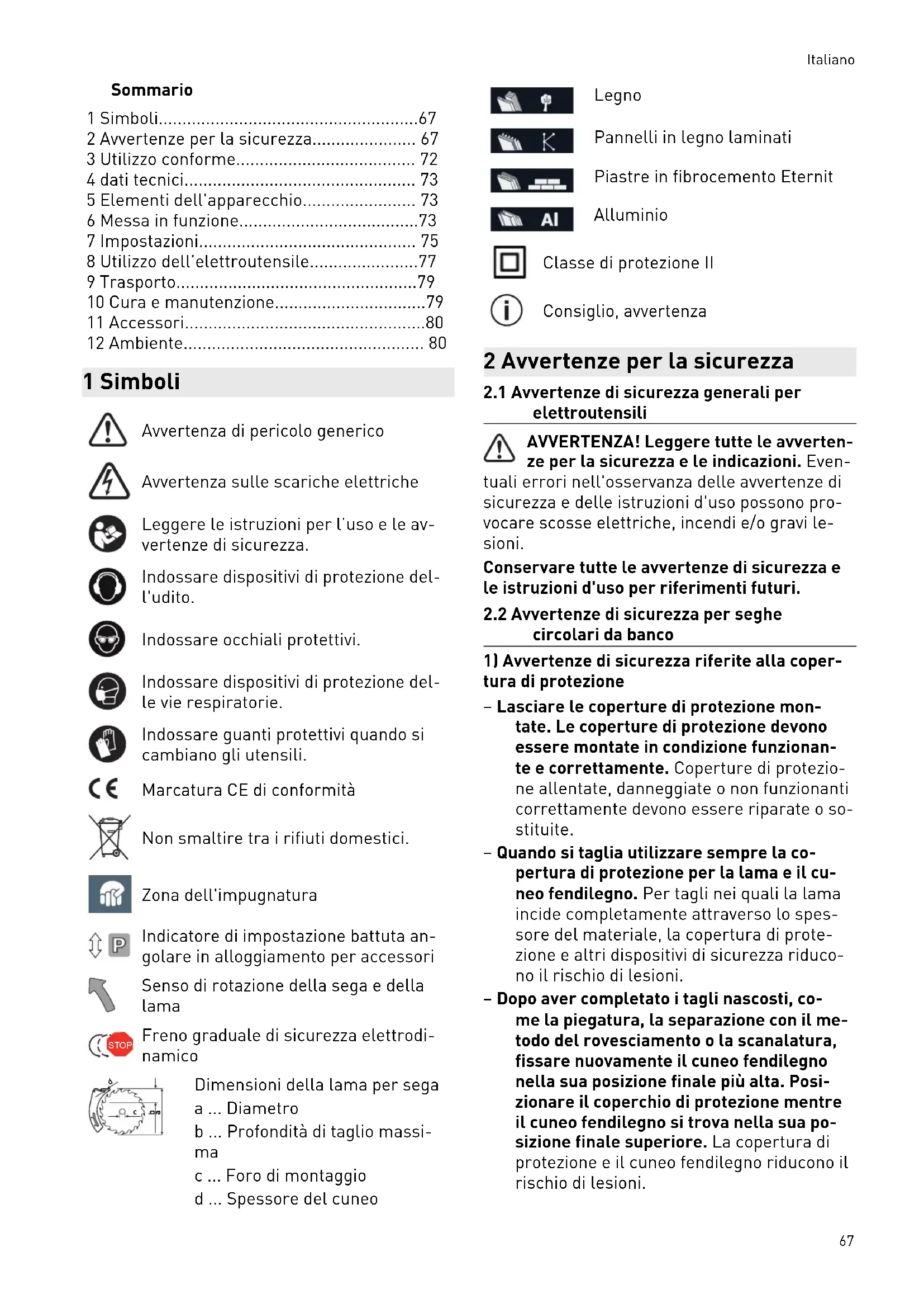 2.2 Avvertenze di sicurezza per seghe