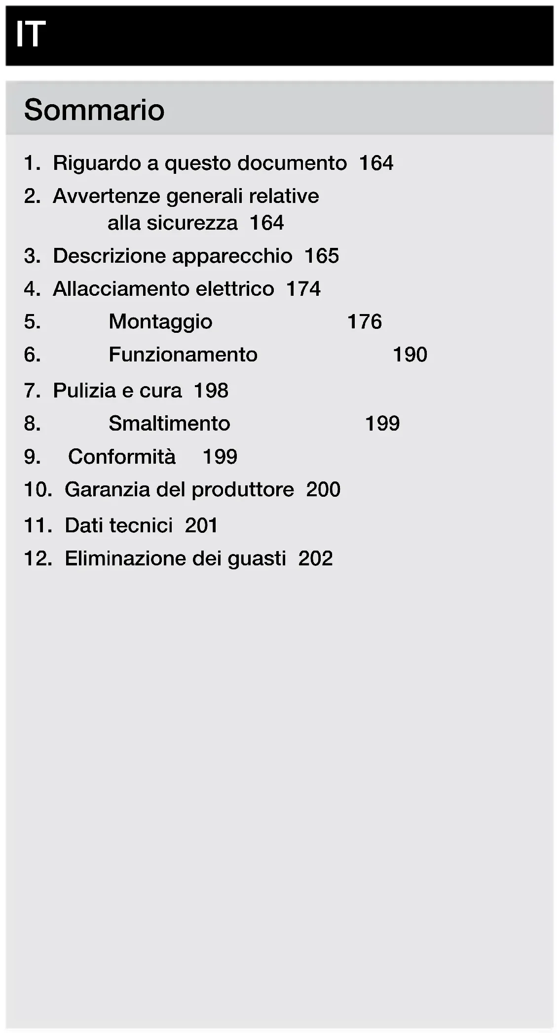 - Pulite l'apparecchio con un panno leggermente inumi- dito, senza detersivi.– 199 – Sommario