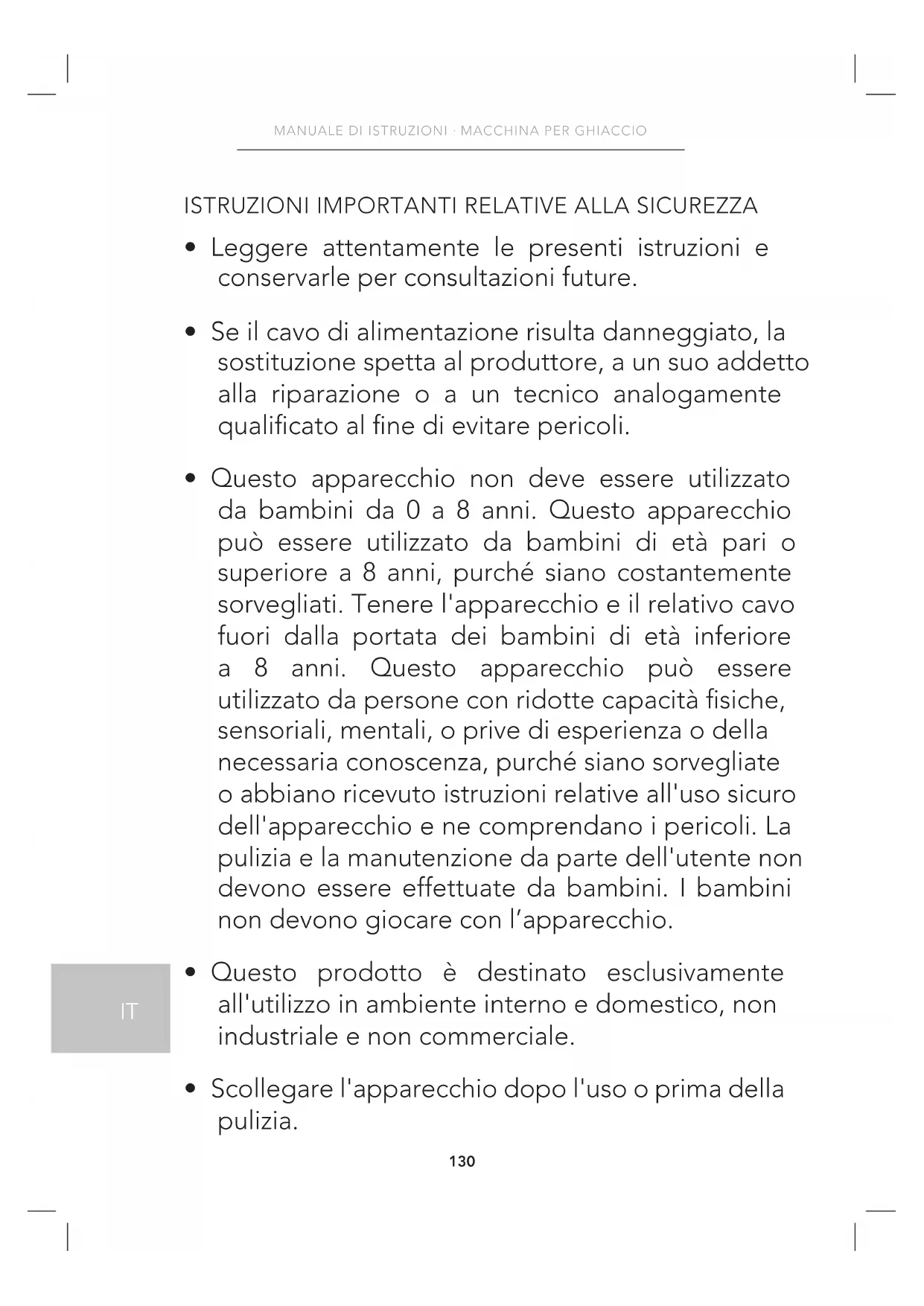 - Non utilizzare prodotti chimici, liquidi acidi o alcalini per la produzione di ghiaccio.