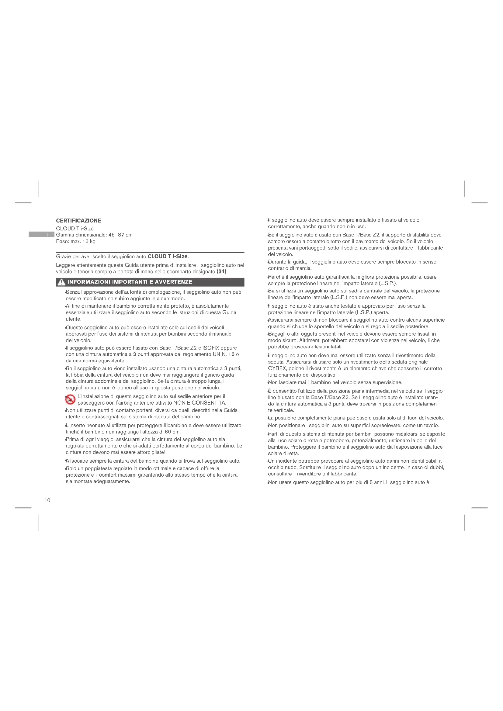 Grazie per aver scelto il seggiolino auto CLOUD T i-Size. Leggere attentamente questa Guida utente prima di installare il seggiolino auto nel veicolo e tenerla sempre a portata di mano nello scomparto designato (34).