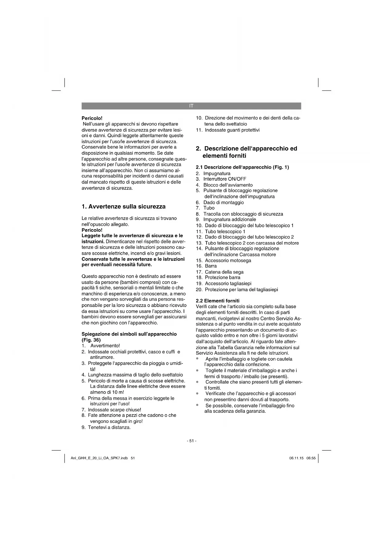 Se possibile, conservate l’imballaggio fino alla scadenza della garanzia. Anl_GHH_E_20_Li_OA_SPK7.indb 51Anl_GHH_E_20_Li_OA_SPK7.indb 51 06.11.15 06:5506.11.15 06:55IT