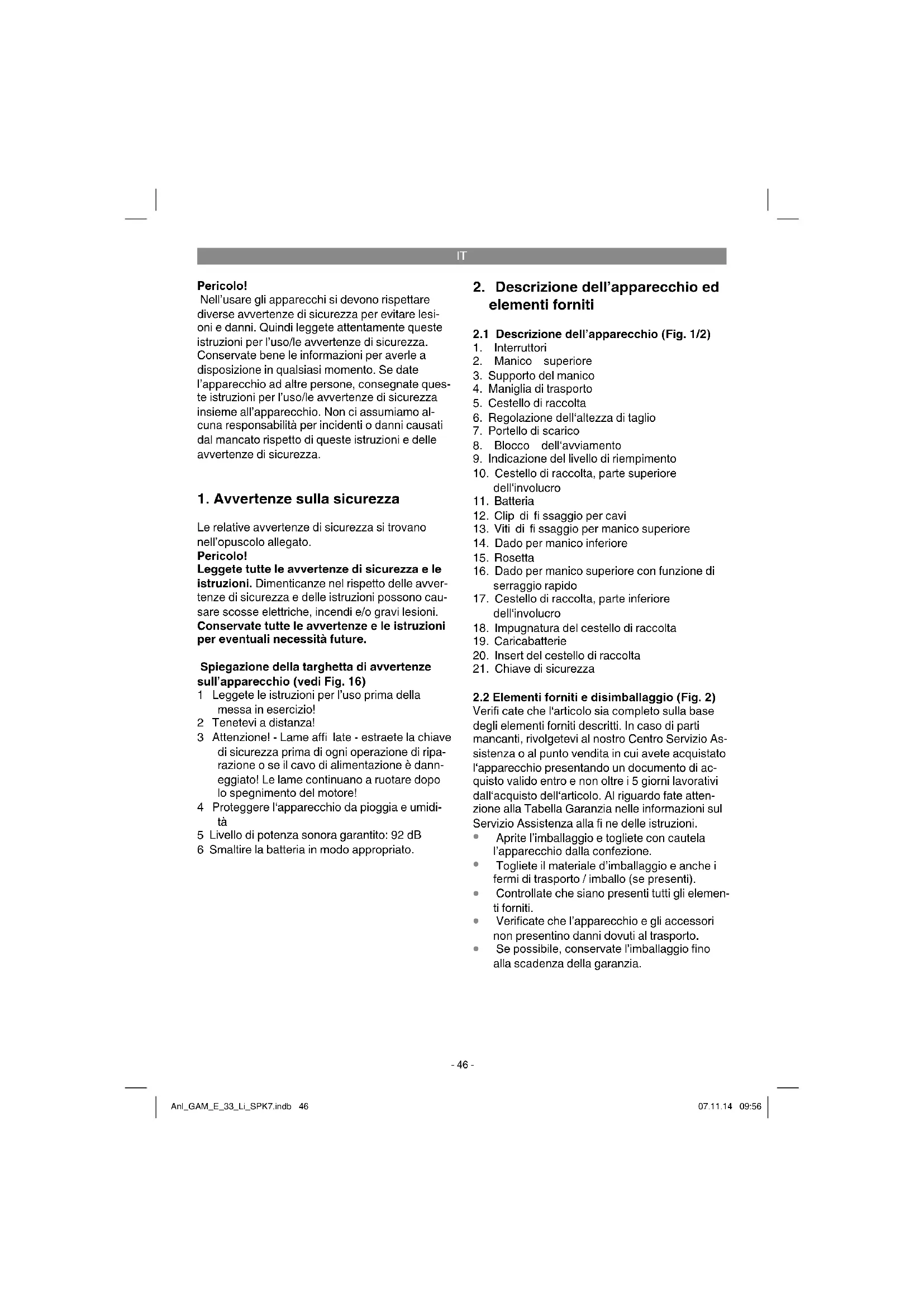 Se possibile, conservate l’imballaggio fino alla scadenza della garanzia. Anl_GAM_E_33_Li_SPK7.indb 46Anl_GAM_E_33_Li_SPK7.indb 46 07.11.14 09:5607.11.14 09:56IT