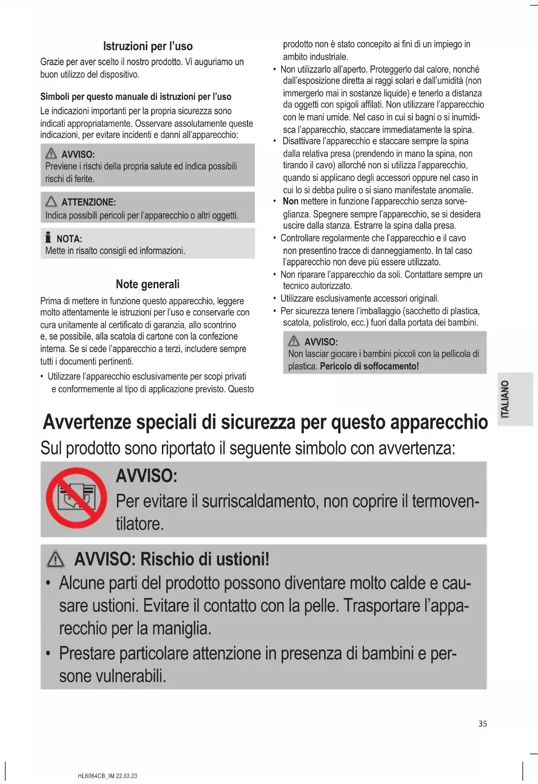 - Prestare particolare attenzione in presenza di bambini e per- sone vulnerabili.HL6064CB_IM 22.03.23