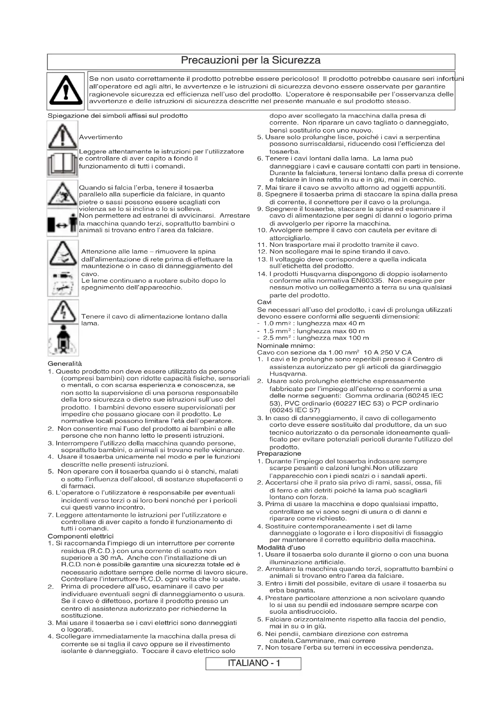 ITALIANO - 1Precauzioni per la Sicurezza