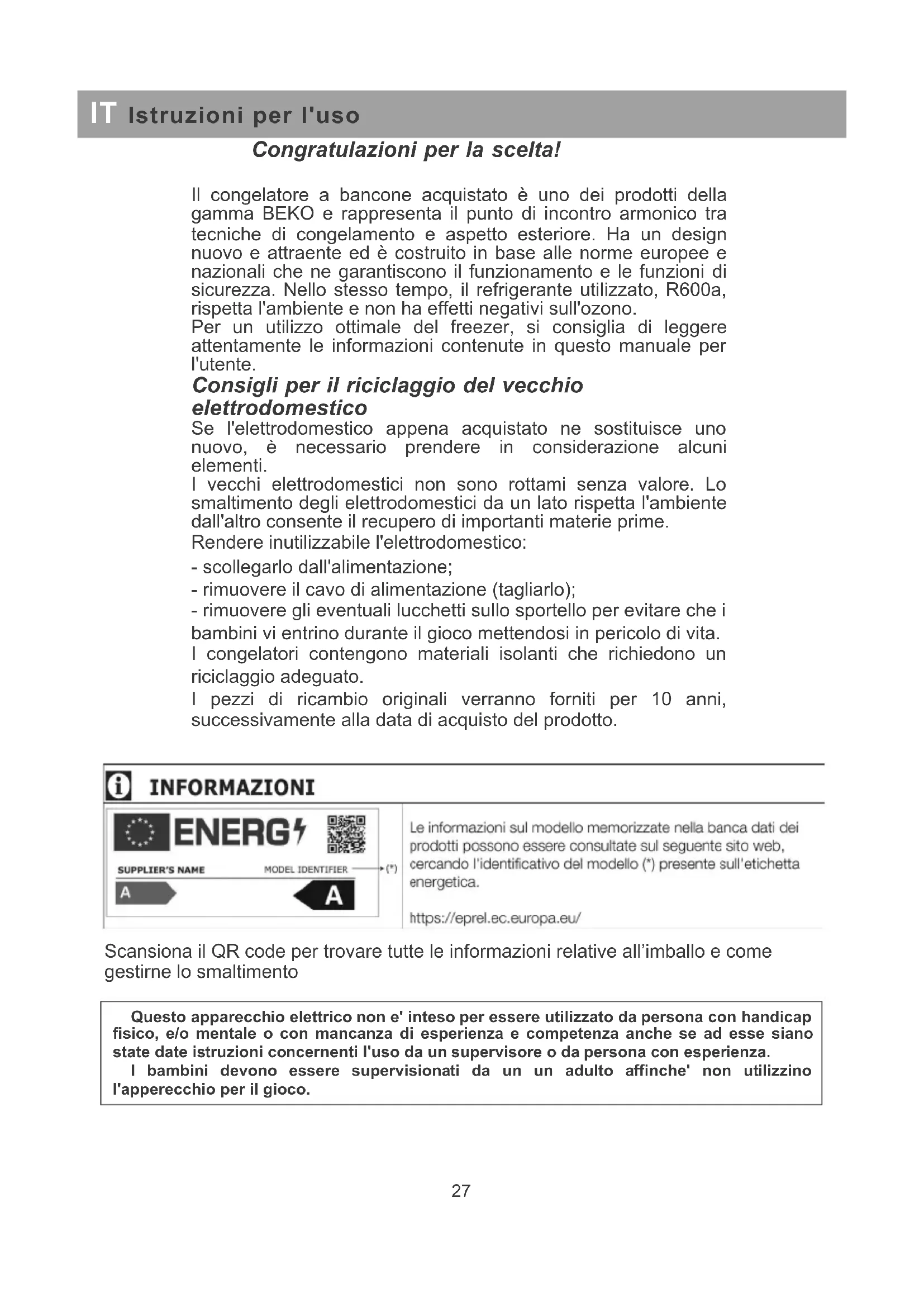 HSM210530 - Congelatore BEKO - Manuale utente e istruzioni gratuiti