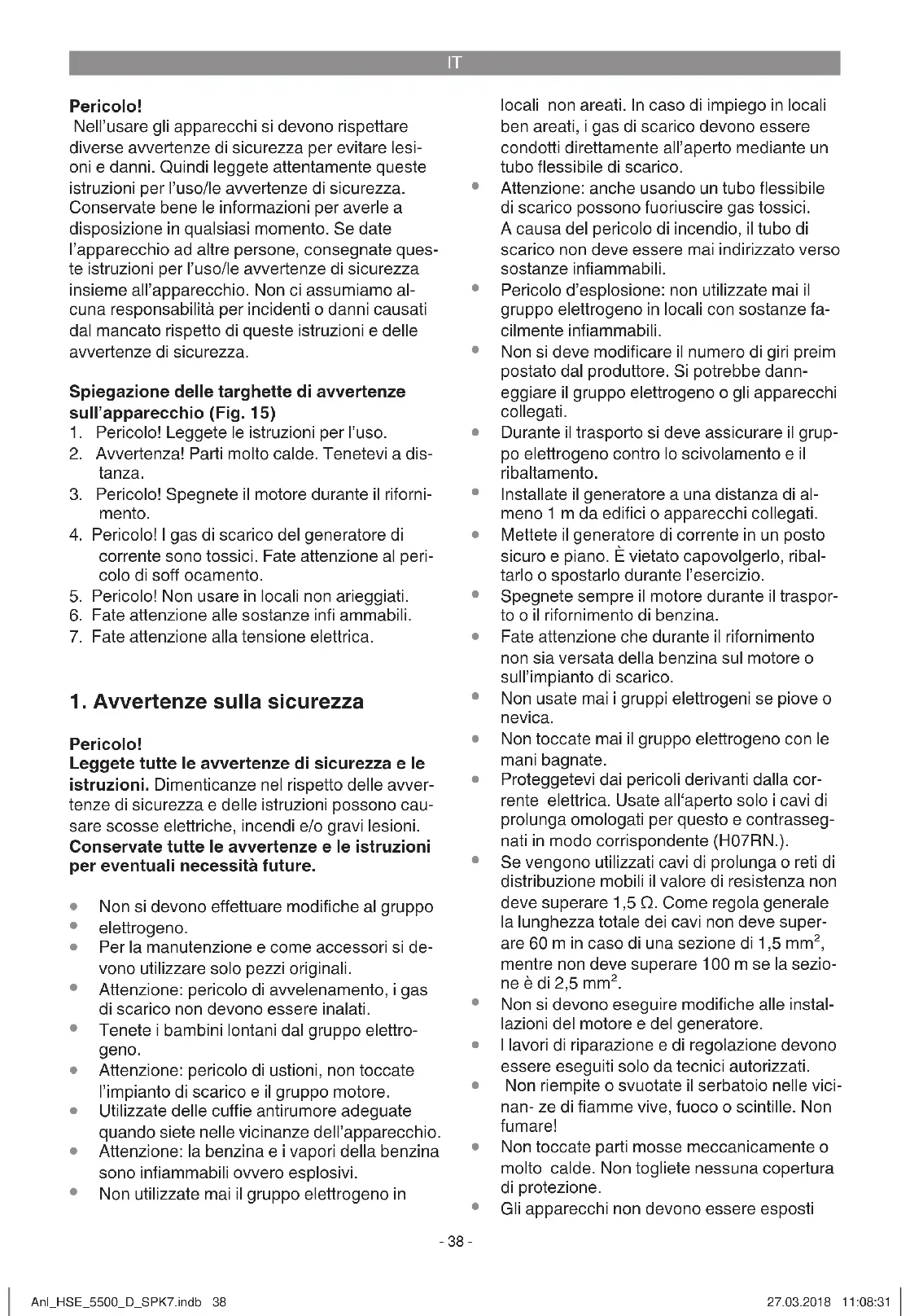 se il motore sembra sottoposto a sovraccari- co o spesso non si accende; Anl_HSE_5500_D_SPK7.indb 42Anl_HSE_5500_D_SPK7.indb 42 27.03.2018 11:08:3127.03.2018 11:08:31IT