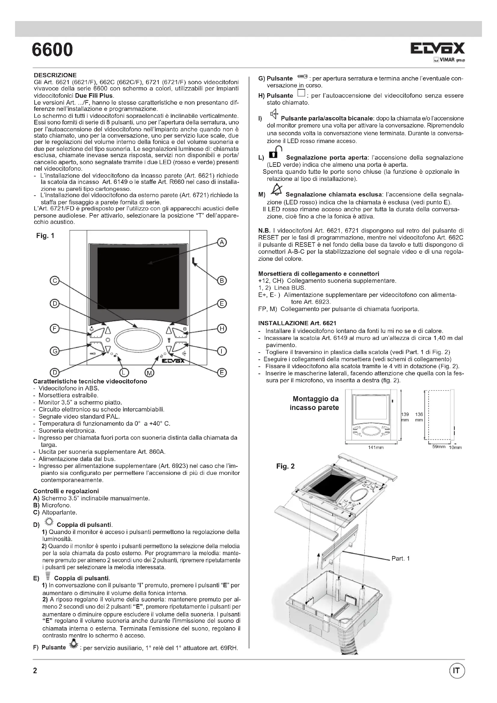 ELVOX 6621 - Non categorizzato Vimar - Manuale utente e istruzioni gratuiti
