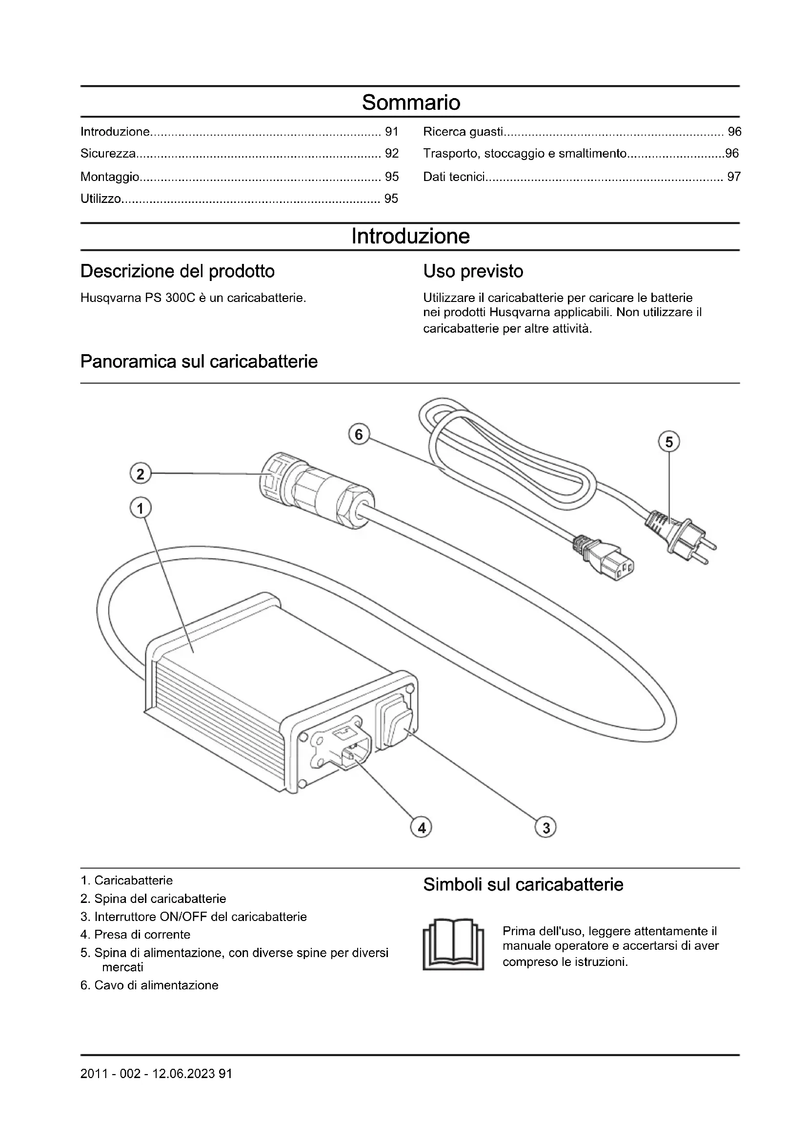 PS300C - Caricabatterie HUSQVARNA - Manuale utente e istruzioni gratuiti