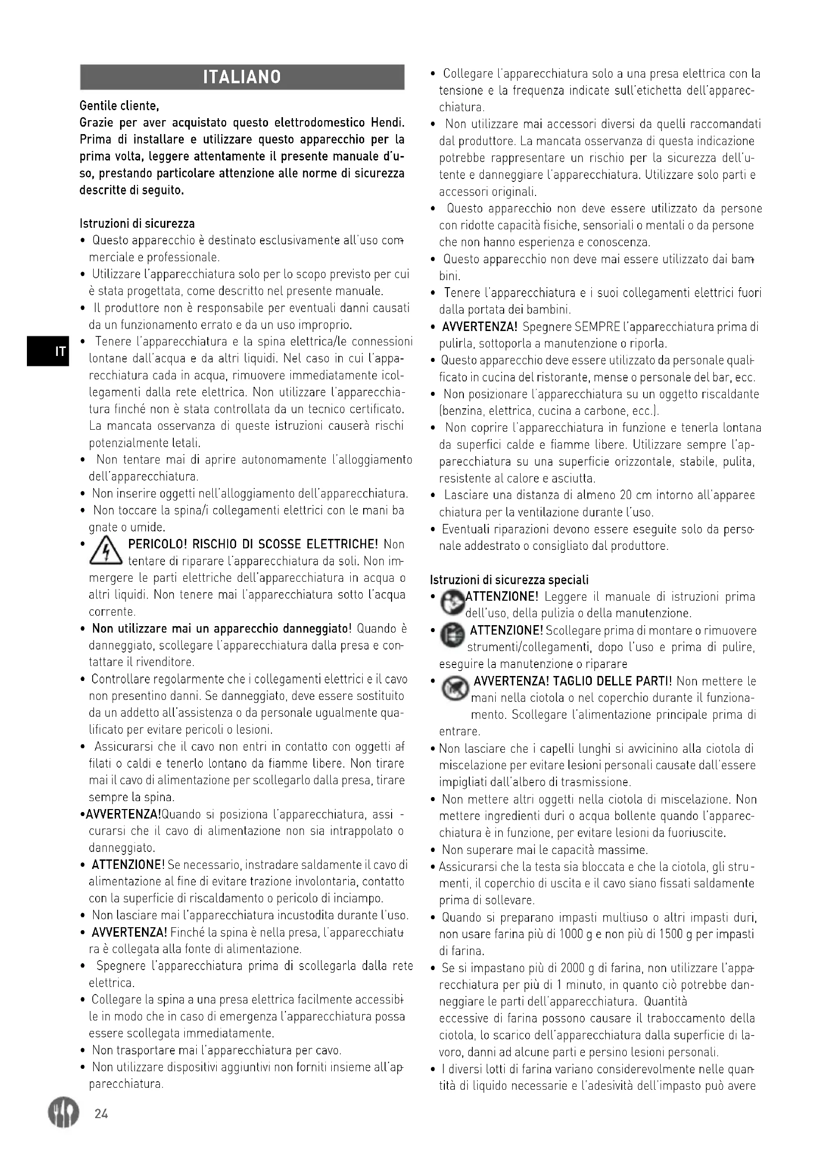- Questo apparecchio è progettato per miscelare, impastare ed emulsionare/muffare prodotti alimentari. Qualsiasi altro utilizzo può causare danni all’apparecchiatura o lesioni per