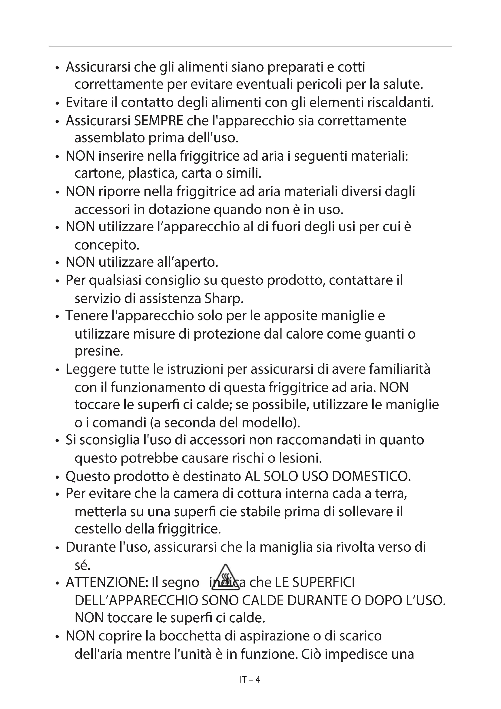 - NON utilizzare questo apparecchio per friggere in olio abbondante.IT – 4 IT – 4