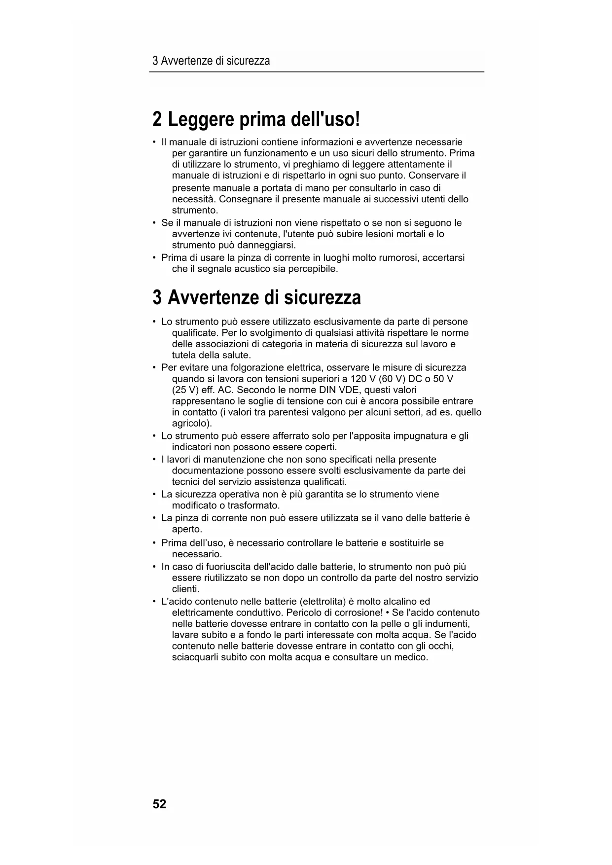 - Prima di usare la pinza di corrente in luoghi molto rumorosi, accertarsi che il segnale acustico sia percepibile. 3 Avvertenze di sicurezza