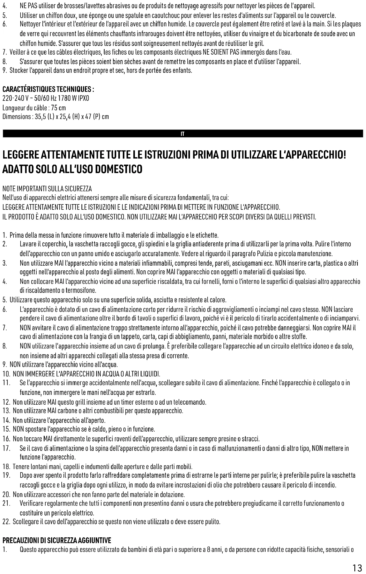 12. Non utilizzare MAI questo grill insieme ad un timer esterno o ad un telecomando.