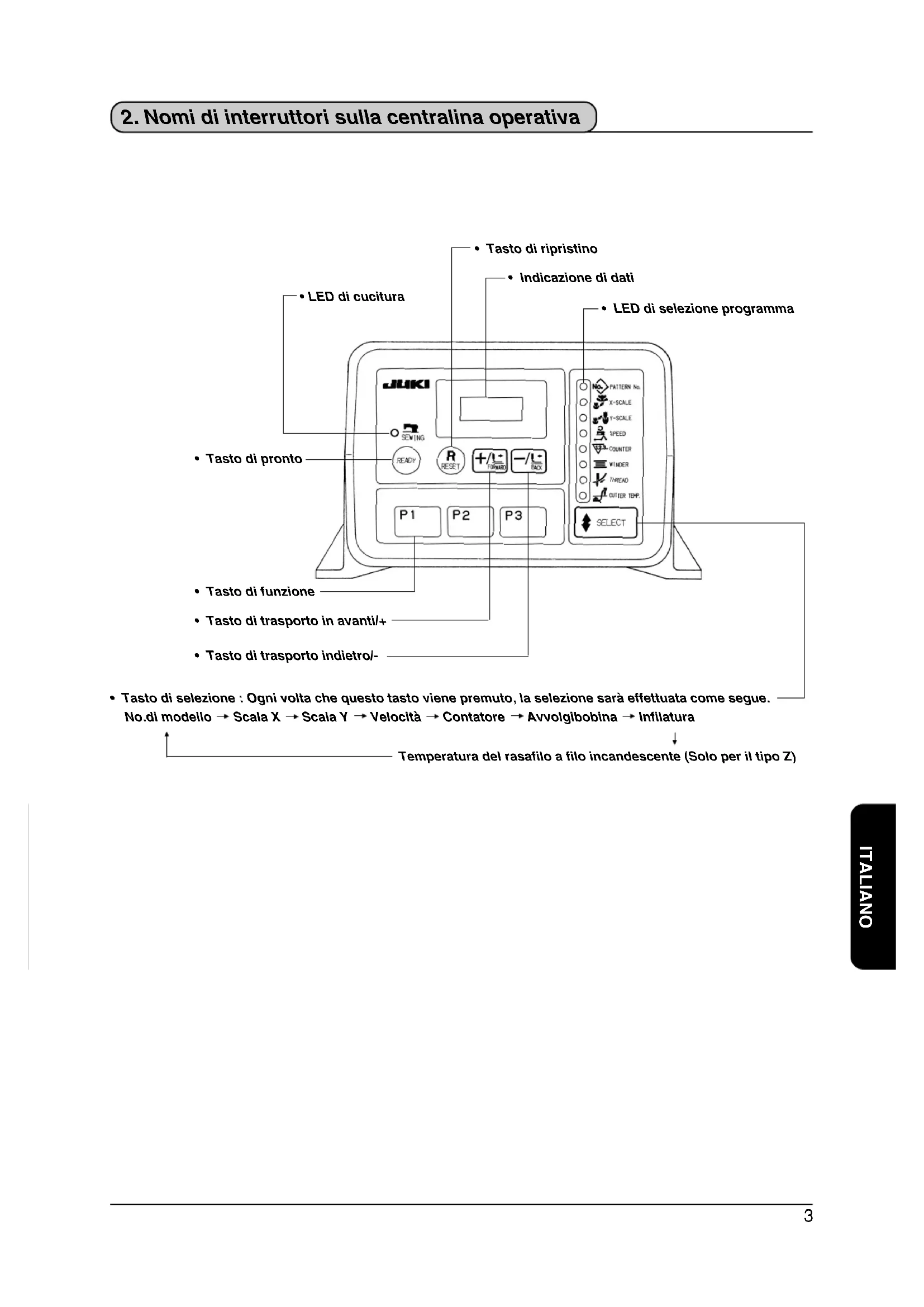 - 2. Nomi di interruttori sulla centralina operativa p. 3