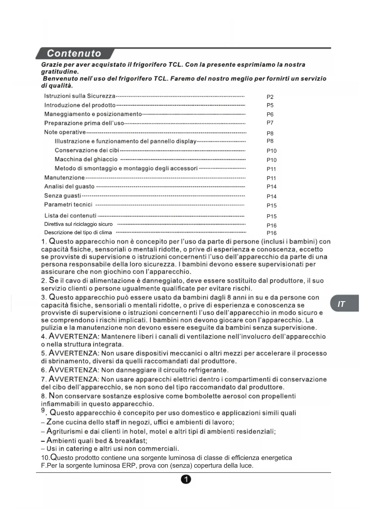 P16 P161. Avvertenza