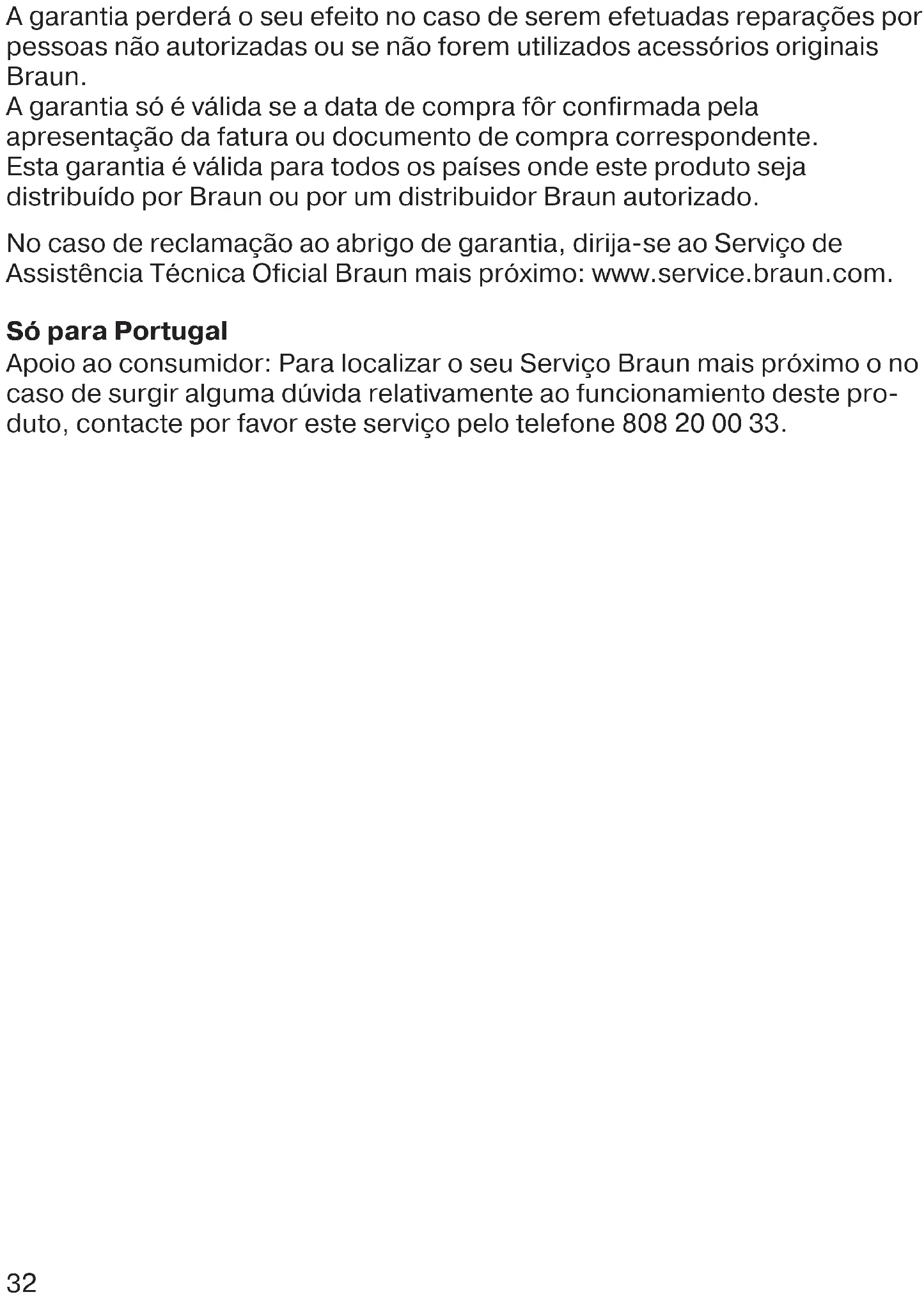 è inoltre possibile consegnare gratuitamente, senza obbligo di acquisto, i prodotti elettronici da smaltire con dimensioni inferiori a 25 cm. L’adeguata raccolta differen- ziata per l’avvio successivo dell’apparecchiatura dismessa al riciclaggio, al trattamento e allo smaltimento ambientalmente compatibile contribuisce ad evitare possibili effetti negativi sull’ambiente e sulla salute e favorisce il reimpiego e/o riciclo dei materiali di cui è composta l’apparecchiatura. Documento soggetto a modifiche senza preavviso. 90012280_Type5542_BT_7350_7340_7330_7320_5365_5360_5342_5340_MN_ANZ.indd 3690012280_Type5542_BT_7350_7340_7330_7320_5365_5360_5342_5340_MN_ANZ.indd 36 13.09.21 09:1913.09.21 09:1937 Garanzia Braun fornisce una garanzia valevole per la durata di 2 anni dalla data di acquisto. Nel periodo di garanzia verranno eliminati, gratuitamente, i guasti dell’appa- recchio conseguenti a difetti di fabbrica o di materiali, sia riparando il pro- dotto sia sostituendo, se necessario, l’intero apparecchio. In base alla disponibilità, il ricambio può essere di colore diverso o di un modello equivalente. Tale garanzia non copre: i danni derivanti dall’uso improprio del prodotto, la normale usura (ad esempio di lamina o blocco coltelli) conseguente al funzionamento dello stesso, i difetti che hanno un effetto trascurabile sul valore o sul funzionamento dell’apparecchio. La garanzia decade se vengono effettuate riparazioni da soggetti non auto- rizzati o con parti non originali Braun. Per accedere al servizio durante il periodo di garanzia, è necessario conse- gnare o far pervenire il prodotto integro, insieme allo scontrino di acquisto, ad un Centro di Assistenza autorizzato Braun. Contattare www.service.braun.com o il numero 800 440 017 per avere informazioni sul Centro di Assistenza autorizzato Braun più vicino. 90012280_Type5542_BT_7350_7340_7330_7320_5365_5360_5342_5340_MN_ANZ.indd 3790012280_Type5542_BT_7350_7340_7330_7320_5365_5360_5342_5340_MN_ANZ.indd 37 13.09.21 09:1913.09.21 09:1938 Nederlands Lees deze gebruiksaanwijzing volledig, ze bevat veiligheidsinformatie. Bewaar het voor toekomstig gebruik. Waarschuwing Dit apparaat kan worden gereinigd onder stromend water. Haal de stekker uit het apparaat alvorens je het met water reinigt. Uw scheerapparaat is voorzien van een speciaal snoer met een geïntegreerd veiligheid laag-voltage aanpassingssys- teem. Vervang of verwijder geen enkel onderdeel, anders loopt u risico op een elektrische schok. Gebruik alleen de speciale snoerset dat bij het apparaat is geleverd. Indien het apparaat voorzien is van