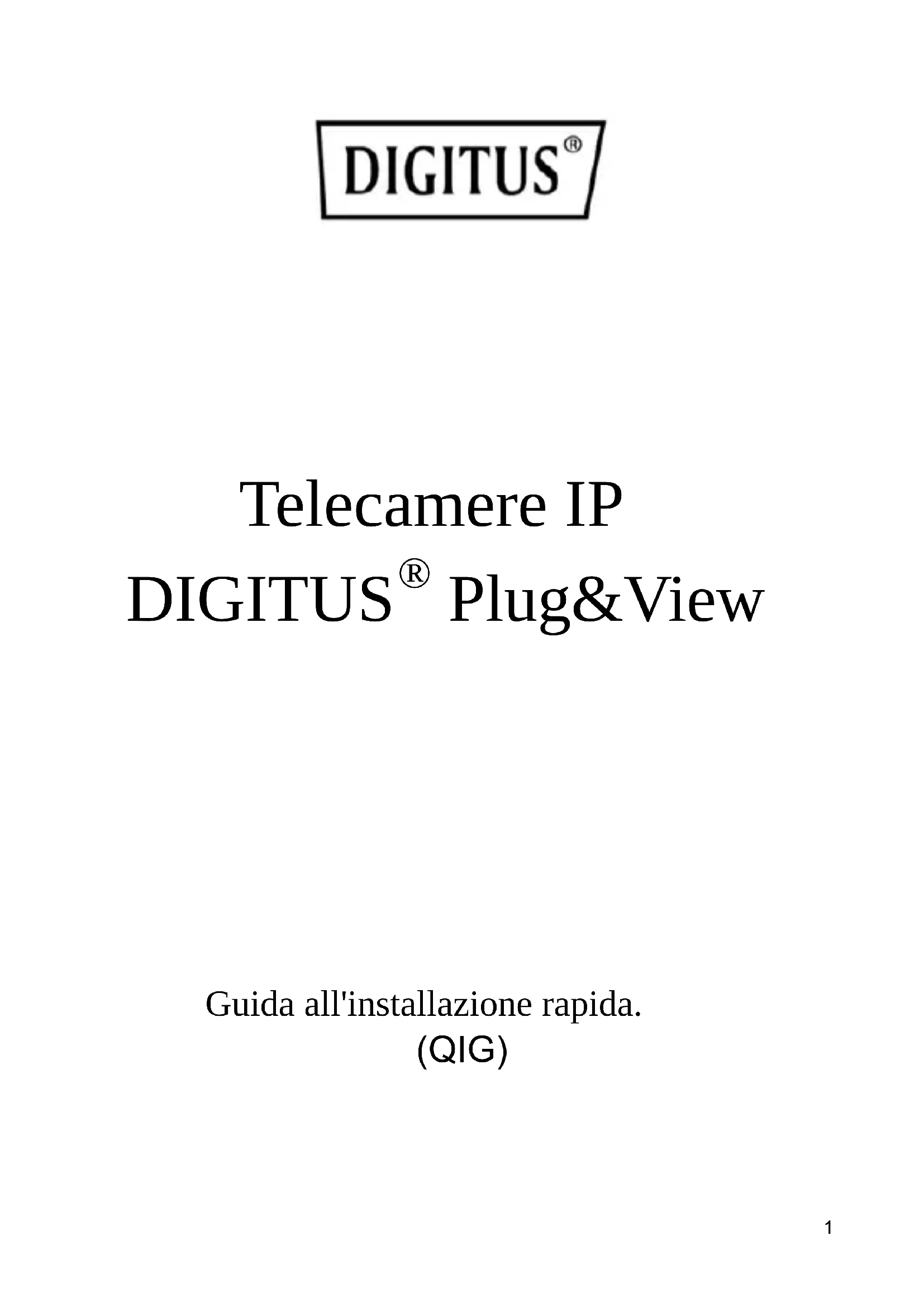 Guida all'installazione rapida. (QIG)2 Precauzioni di sicurezza Utilizzare la telecamera IP Plug&View solo nell'intervallo di temperatura specificato per tale prodotto Quando non in uso, conservare il prodotto in un luogo pulito e asciutto con temperature tra 0 °C e 40 °C Non coprire la telecamera Non lasciare che la telecamera entri in contatto con liquidi (tranne telecamere per esterni dotate di copertura con grado di protezione IP66) Le telecamere IP Plug&View non sostituiscono la supervisione degli adulti. Per proteggere la salute dei propri bambini, familiari o animali domestici, controllarli regolarmente Assicurarsi che le telecamere IP per interni siano utilizzate solo in ambienti interni. Queste telecamere non sono dest.inate all'uso in ambienti esterni e potrebbero subire danni. Se necessario, utilizzare i modelli adatti all'uso in ambienti esterni Installare le telecamere IP Plug&View vicino a una presa facilmente accessibile. Accertarsi che il cavo di alimentazione non sia sottoposto a tensione o pressione eccessiva Installare le telecamere IP Plug&View nel raggio di portata del router Wi-Fi e accertarsi che tra le telecamere e il router non ci siano oggetti che possano interferire con il segnale Wi-Fi3 Proteggere le telecamere IP Plug&View da dispositivi elettrici e ad alta frequenza che producono interferenze (forni a microonde, telefoni cellulari, ecc.) Tenere le telecamere, il cavo di rete e il cavo di alimentazione lontano dalla portata di bambini, in quanto tali componenti possono costituire un pericolo per la loro incolumità Utilizzare solo l'alimentatore fornito in dotazione. Per nessun motivo cercare di riparare da soli le telecamere IP Plug&View. Gli interventi di riparazione e manutenzione devono essere eseguiti da personale specializzato. In caso di problemi, contattare il nostro servizio clienti. Attenersi a tutte le leggi applicabili al monitoraggio a mezzo telecamere. Le telecamere IP Plug&View sono destinate all'utilizzo privato in ambienti domestici. Informare i membri della famiglia, parenti e collaboratori domestici sulla presenza di telecamere di monitoraggio in casa. Accertarsi che le aree pubbliche e le proprietà dei vicini non siano nella portata della telecamera.4 Informazioni personali Leggere e accettare l'informativa sulla privacy per l'utilizzo dei sistemi DIGITUS