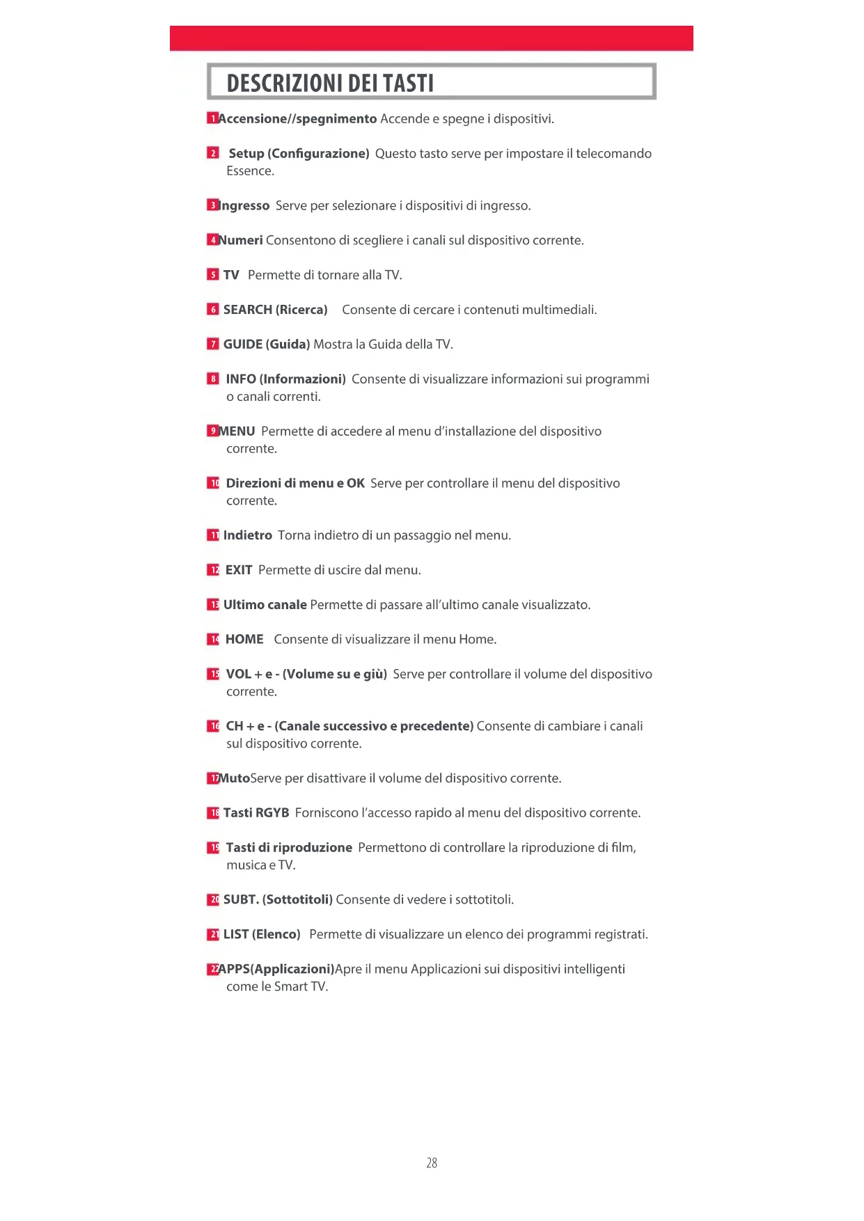 DESCRIZIONI DEI TASTI