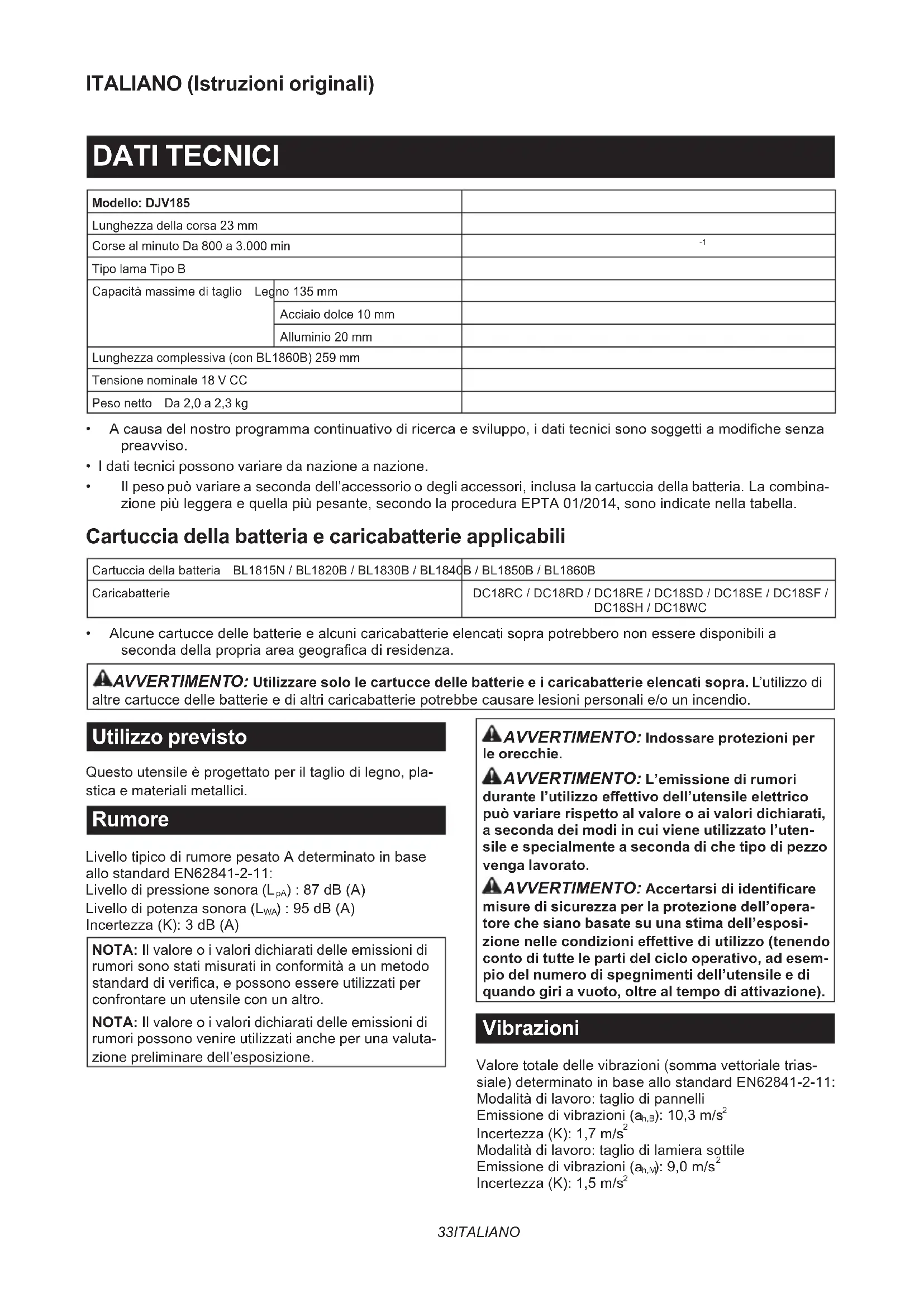 Scarica le istruzioni per il tuo Sega elettrica in formato PDF gratuitamente! Trova il tuo manuale DJV185 - MAKITA e riprendi in mano il tuo dispositivo elettronico. In questa pagina sono pubblicati tutti i documenti necessari per l'utilizzo del tuo dispositivo. DJV185 del marchio MAKITA.