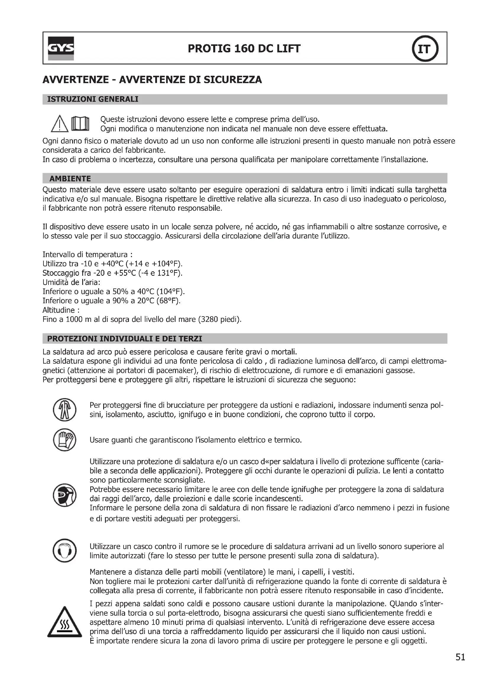 MANUALE UTENTE Protig 160 DC Lift GYS