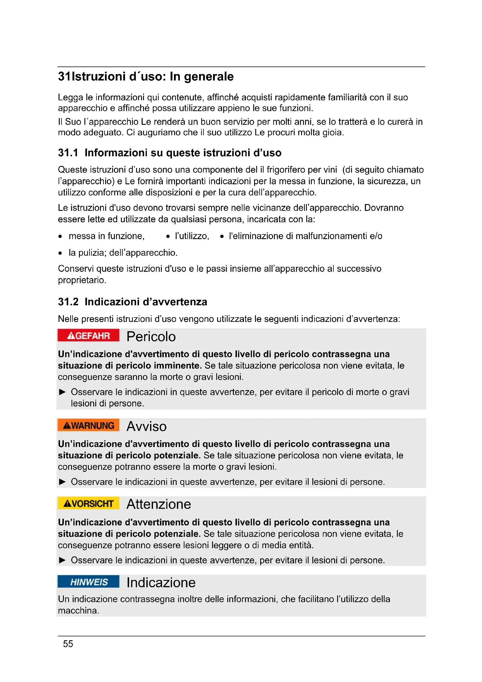 31.1 Informazioni su queste istruzioni d’uso