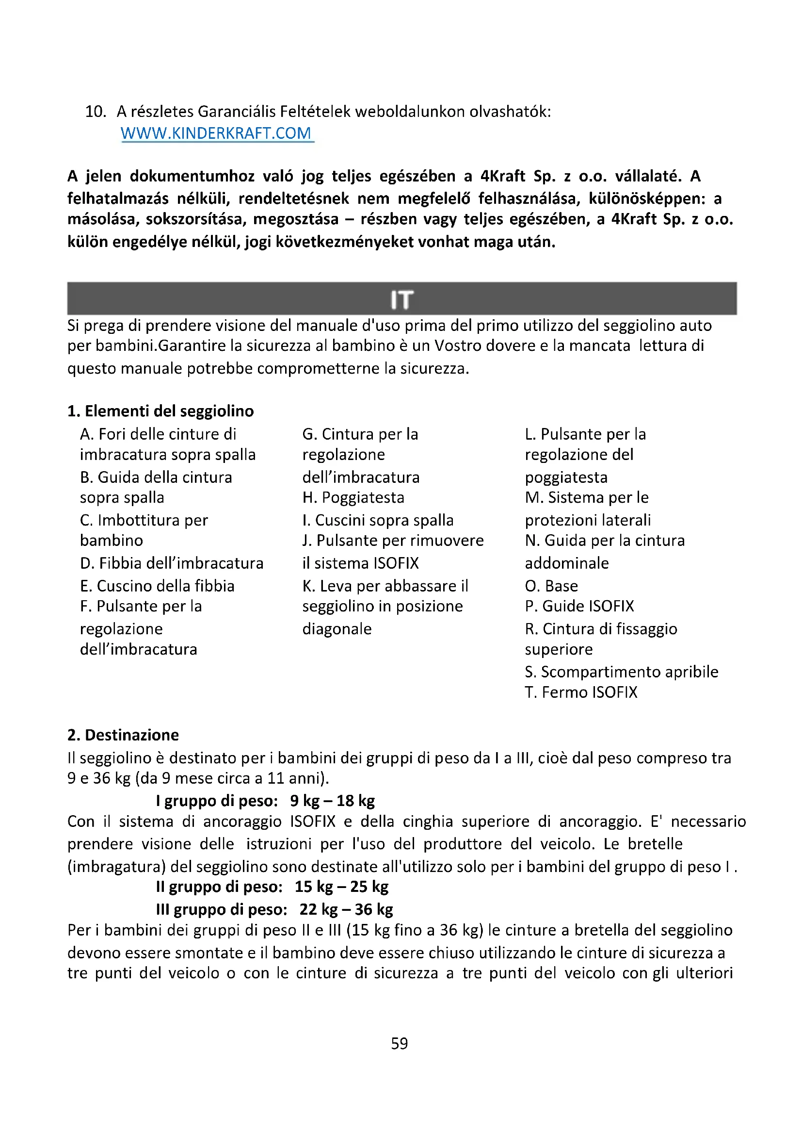 1. Tutti i prodotti Kinderkraft sono coperti da una garanzia di 24 mesi. Il periodo di