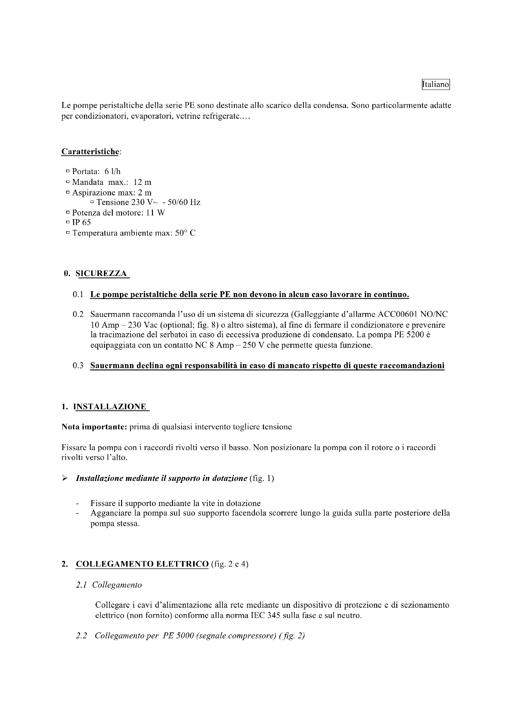 0.1 Le pompe peristaltiche della serie PE non devono in alcun caso lavorare in continuo.