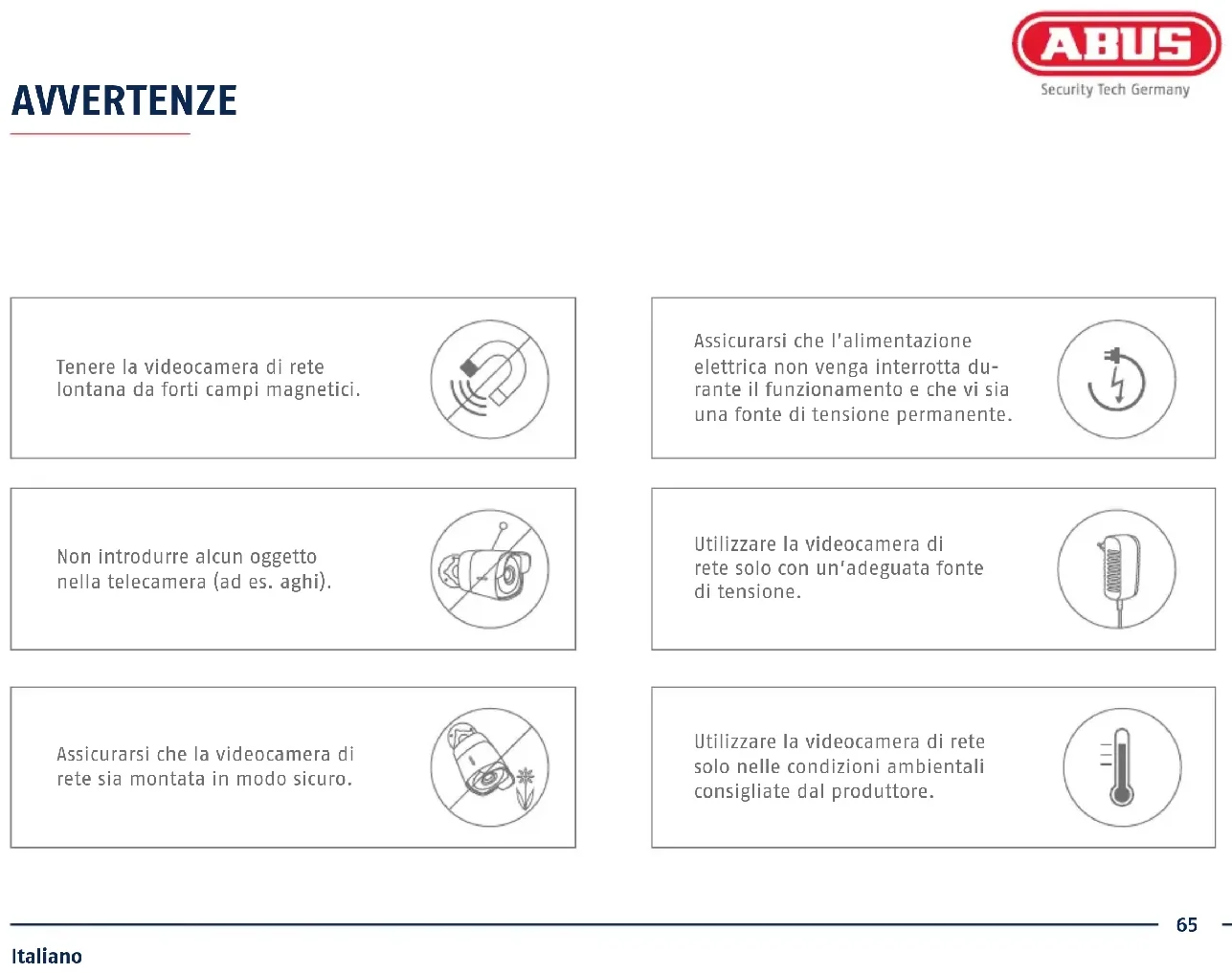 Scarica le istruzioni per il tuo Telecamera di sorveglianza in formato PDF gratuitamente! Trova il tuo manuale TVIP62510 - ABUS e riprendi in mano il tuo dispositivo elettronico. In questa pagina sono pubblicati tutti i documenti necessari per l'utilizzo del tuo dispositivo. TVIP62510 del marchio ABUS.