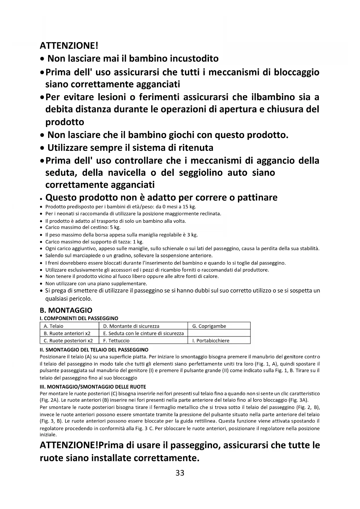 - Si prega di smettere di utilizzare il passeggino se si hanno dubbi sul suo corretto utilizzo o se si sospetta un qualsiasi pericolo. B. MONTAGGIO