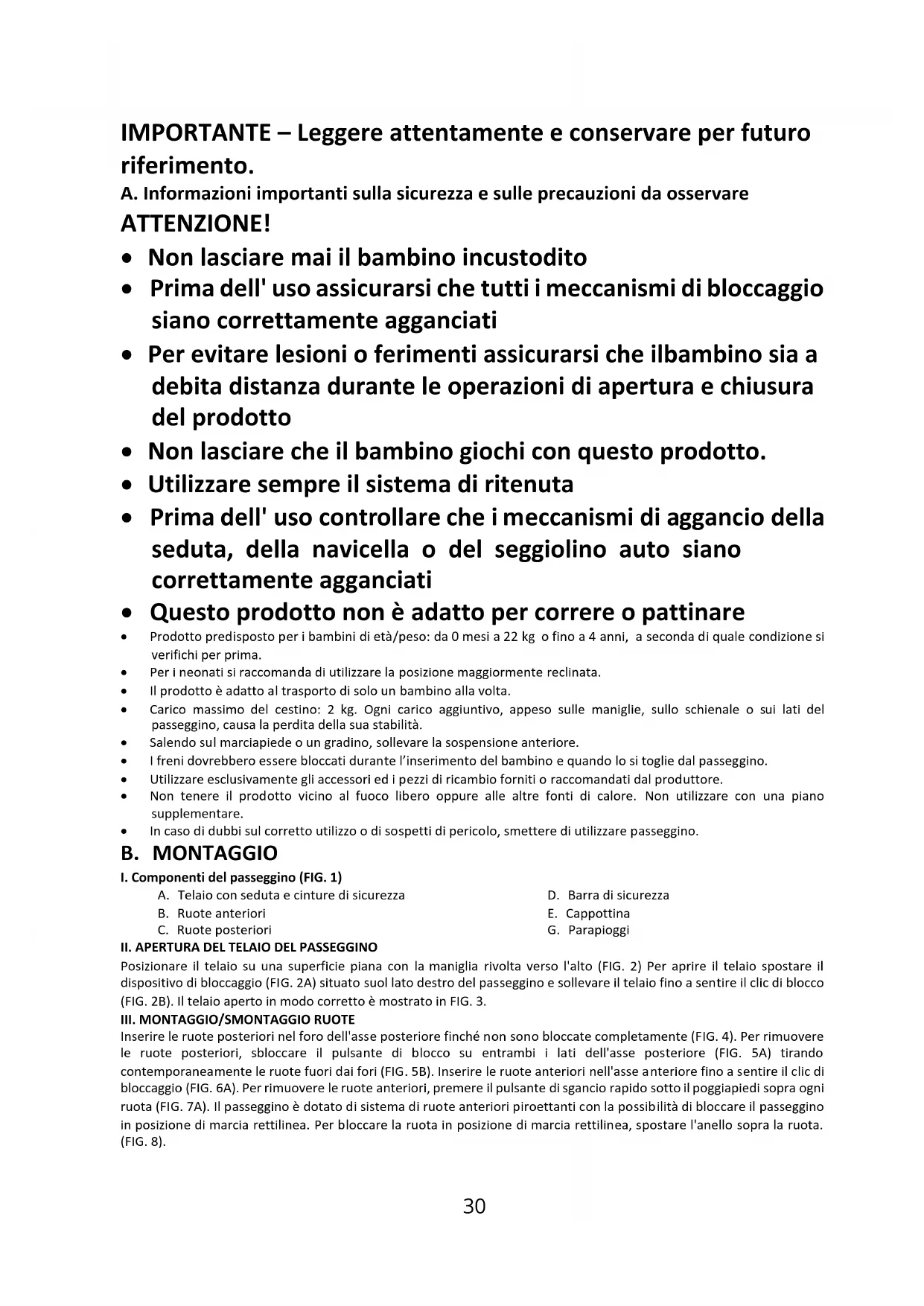 - In caso di dubbi sul corretto utilizzo o di sospetti di pericolo, smettere di utilizzare passeggino. B. MONTAGGIO