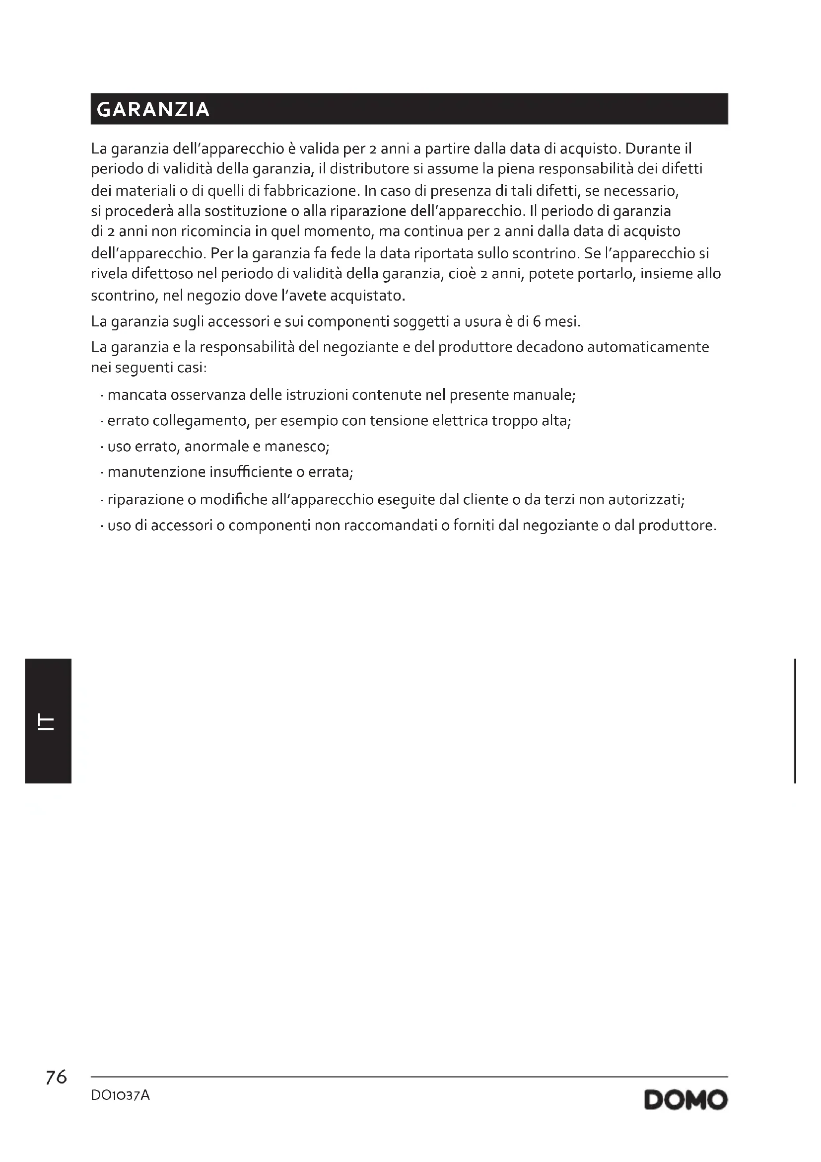 - uso di accessori o componenti non raccomandati o forniti dal negoziante o dal produttore.77 DO1037A www.domo-elektro.be
