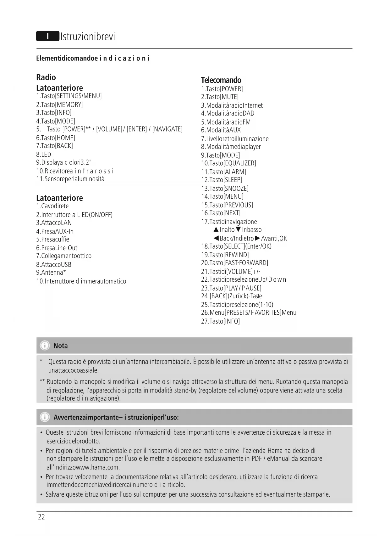 - Perragioni di tutela ambientale eper il risparmio di preziose materie prime l’azienda Hama ha deciso di non stampareleistruzioni per l’uso elemette adisposizione esclusivamente in PDF /eManual da scaricare all’indirizzowww.hama.com.
