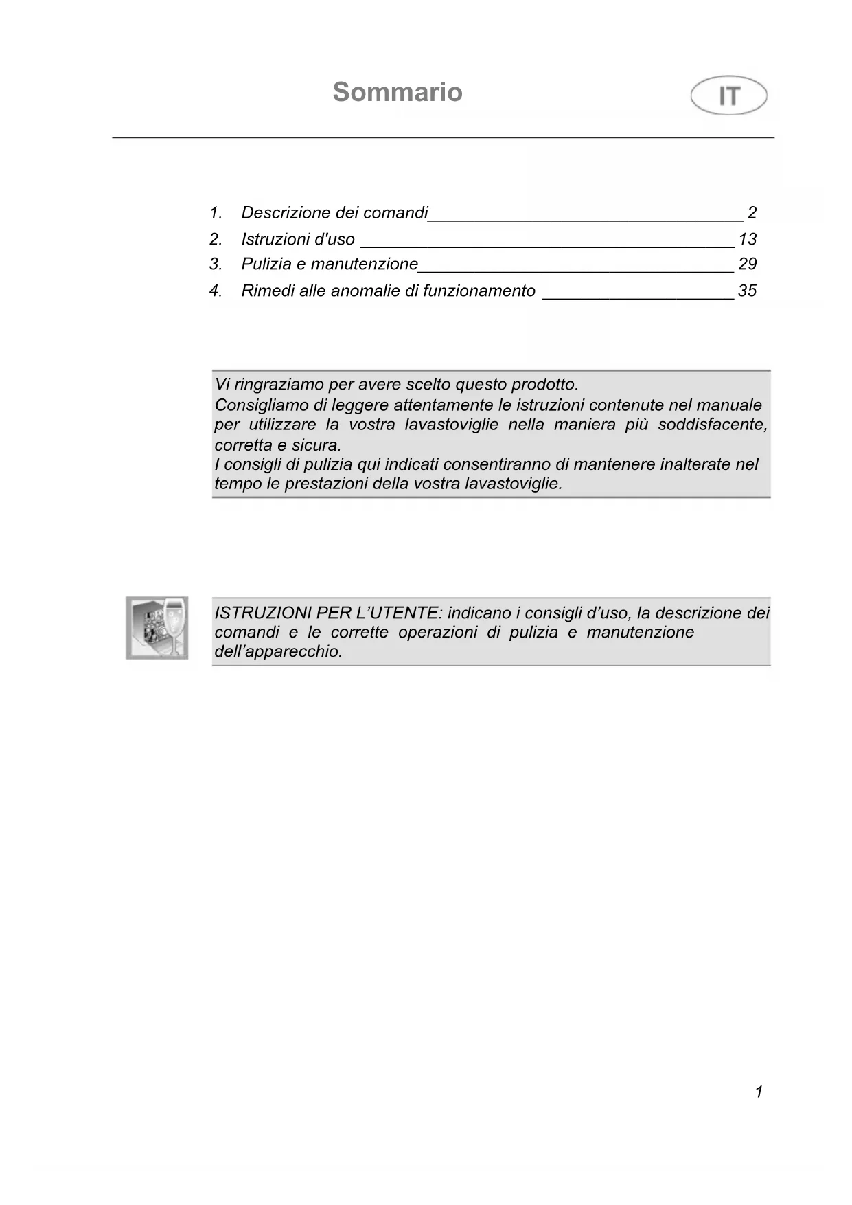 Vi ringraziamo per avere scelto questo prodotto. Consigliamo di leggere attentamente le istruzioni contenute nel manuale per utilizzare la vostra lavastoviglie nella maniera più soddisfacente, corretta e sicura. I consigli di pulizia qui indicati consentiranno di mantenere inalterate nel tempo le prestazioni della vostra lavastoviglie.