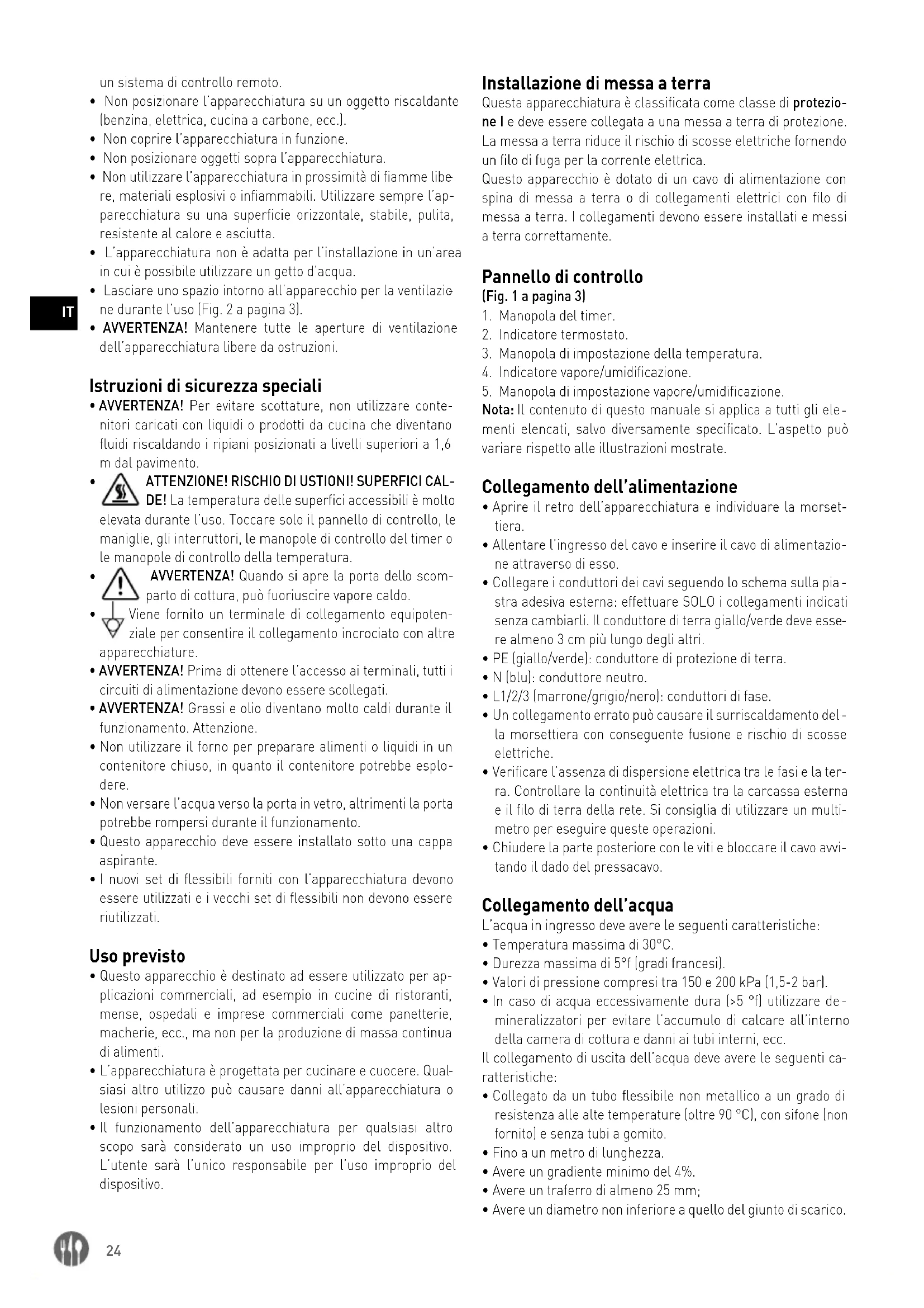 DE! La temperatura delle superfici accessibili è molto elevata durante l’uso. Toccare solo il pannello di controllo, le maniglie, gli interruttori, le manopole di controllo del timer o le manopole di controllo della temperatura.