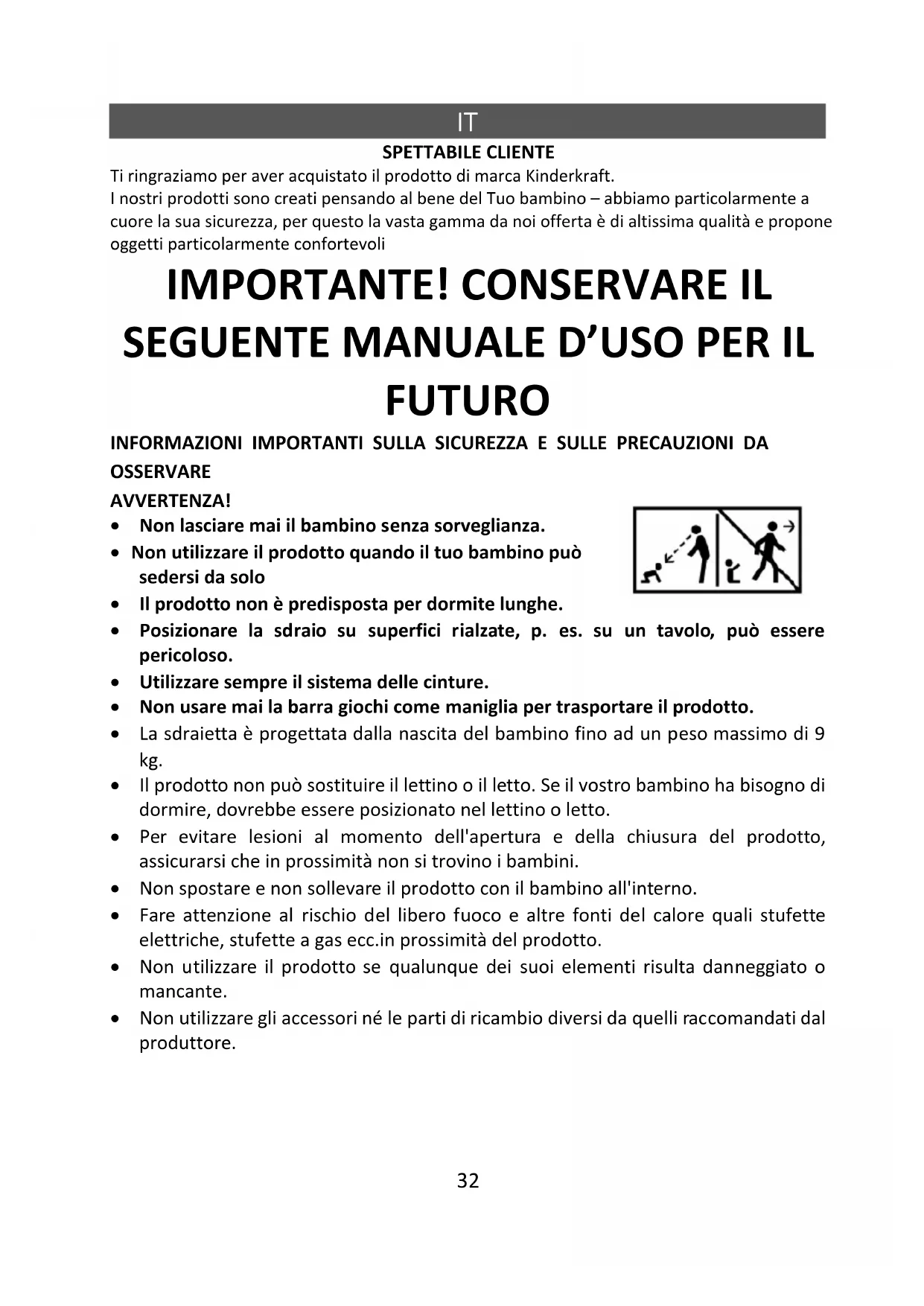 SPETTABILE CLIENTE Ti ringraziamo per aver acquistato il prodotto di marca Kinderkraft. I nostri prodotti sono creati pensando al bene del Tuo bambino – abbiamo particolarmente a cuore la sua sicurezza, per questo la vasta gamma da noi offerta è di altissima qualità e propone oggetti particolarmente confortevoli