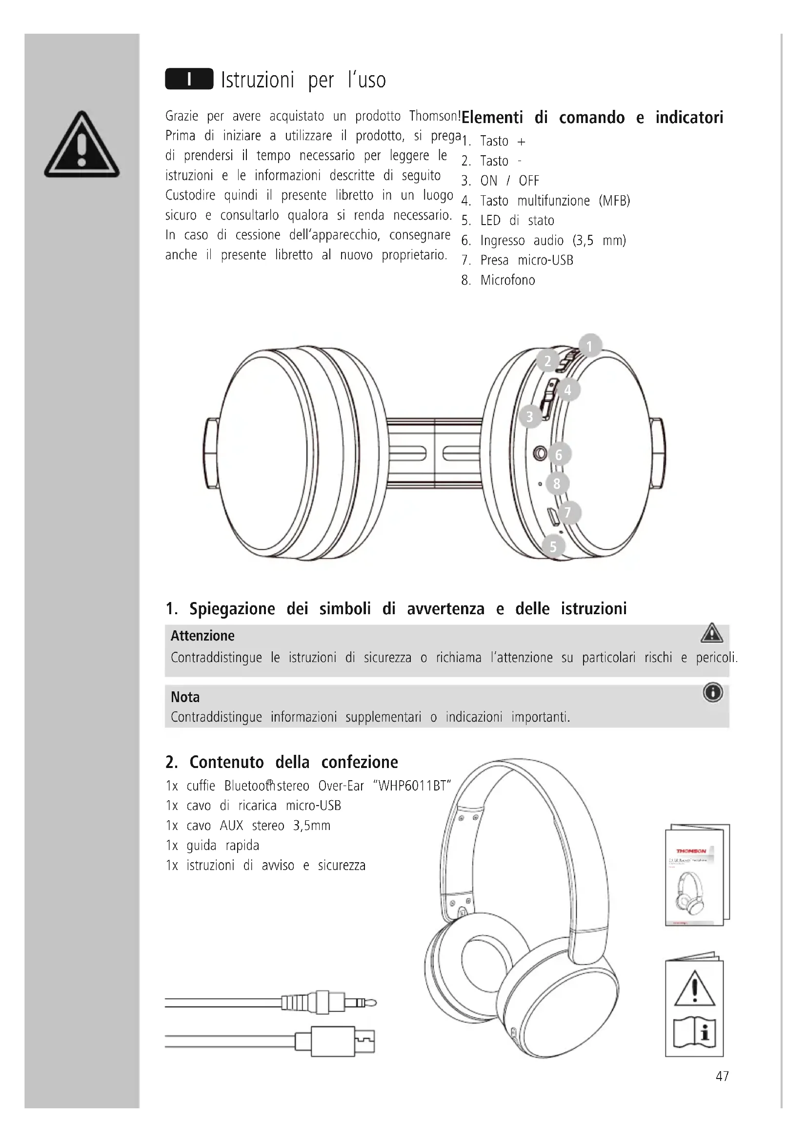 MANUALE UTENTE WHP6011BT THOMSON