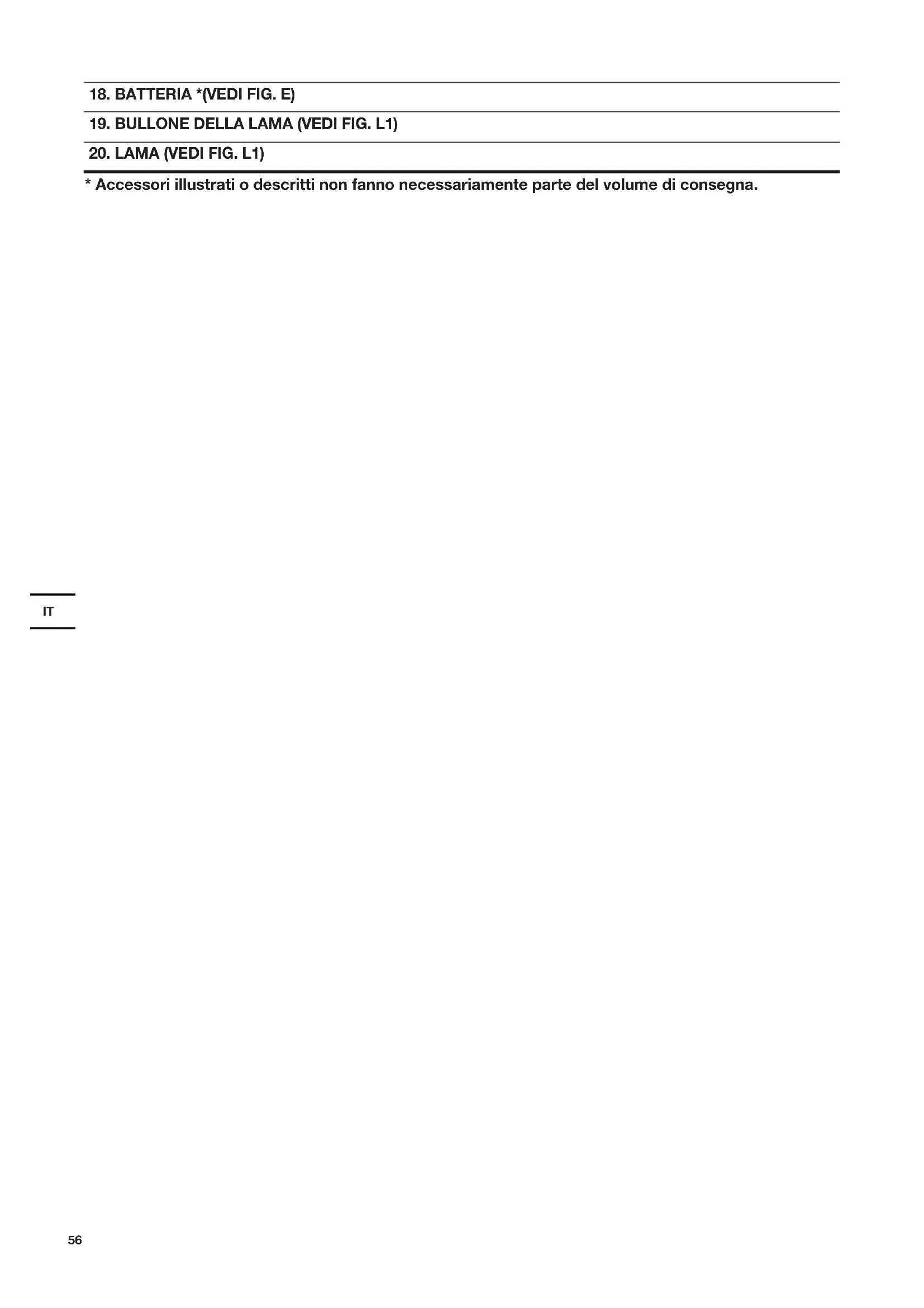 - Accessori illustrati o descritti non fanno necessariamente parte del volume di consegna.IT
