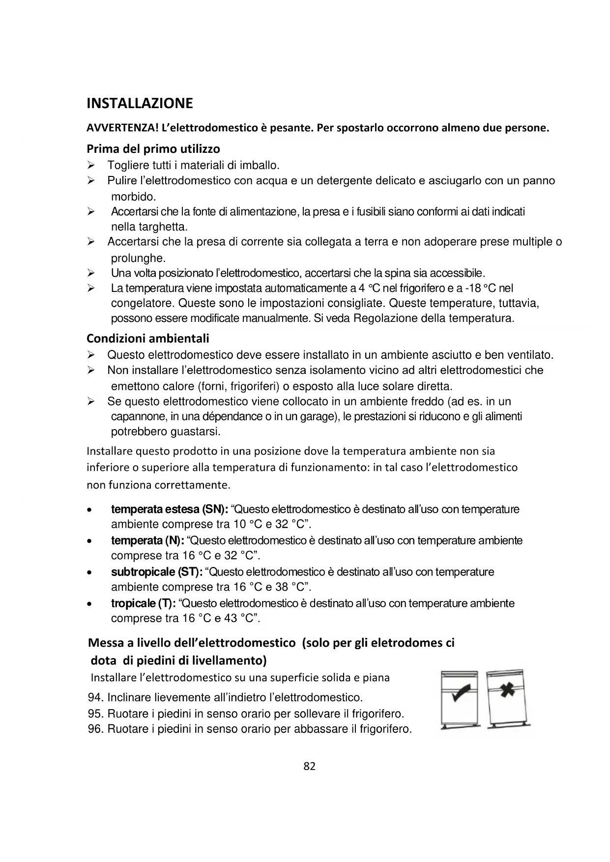 - subtropicale (ST): “Questo elettrodomestico è destinato all’uso con temperature ambiente comprese tra 16 °C e 38 °C”.
