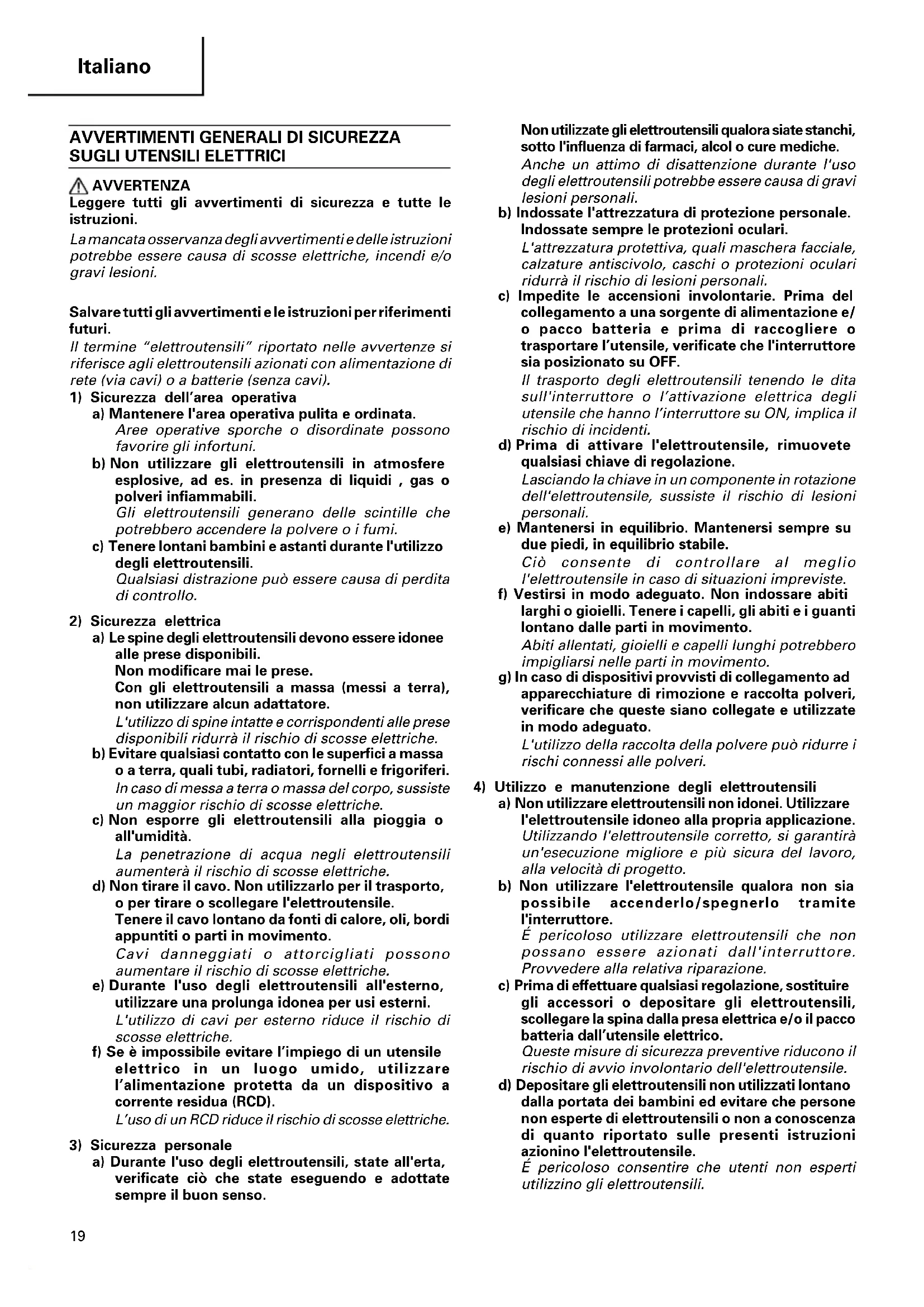 4) Utilizzo e manutenzione degli elettroutensili