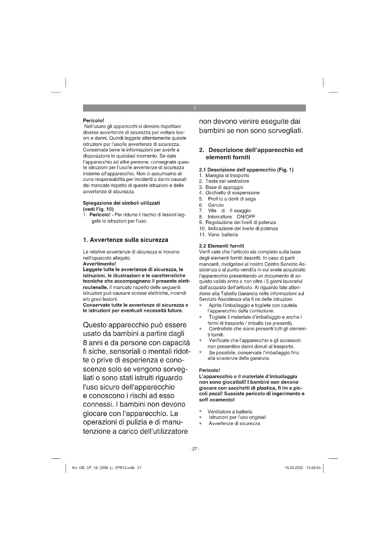 Il ventilatore a batteria si accende sempre al livello più basso. Anl_GE_CF_18_2200_Li_SPK13.indb 28Anl_GE_CF_18_2200_Li_SPK13.indb 28 16.03.2022 13:59:4616.03.2022 13:59:46I