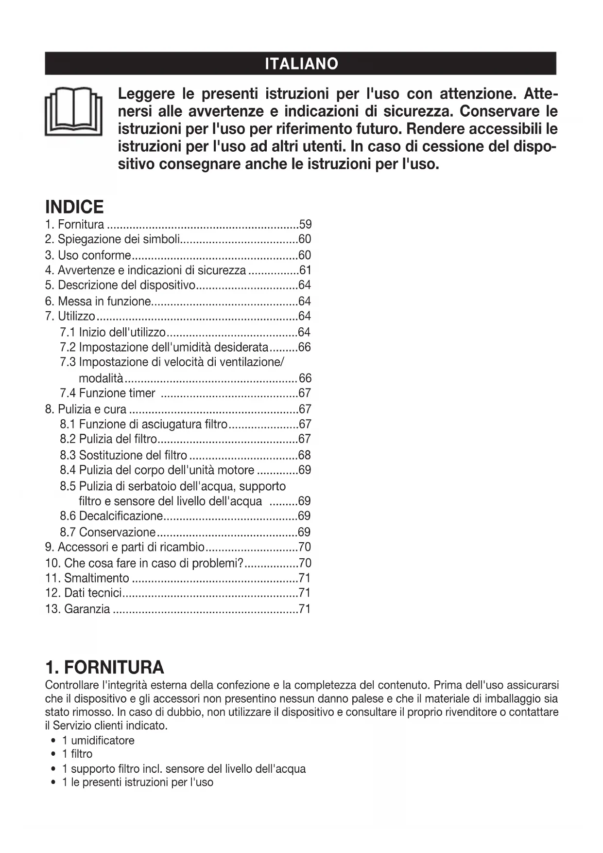 7.2 Impostazione dell'umidità desiderata .........66