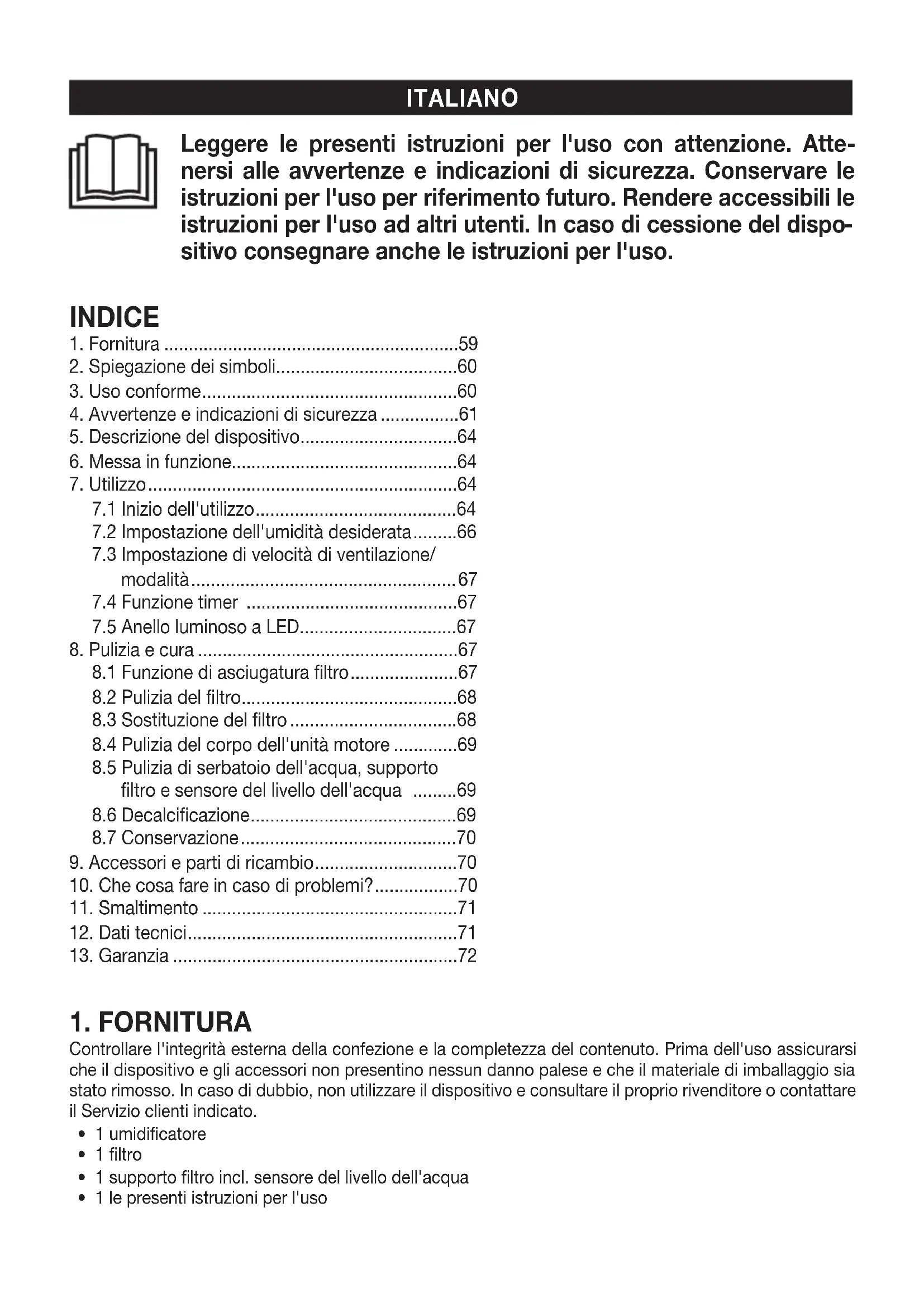 zioni per l'uso. Qualsiasi uso non conforme comporta un pericolo. Qualsiasi altro utilizzo non consigliato dal produttore può provocare incendi, scosse elettriche o lesioni personali. Il produttore non è da ritenersi responsabile in caso di danni riconducibili a un uso non conforme o sconsiderato.60 61