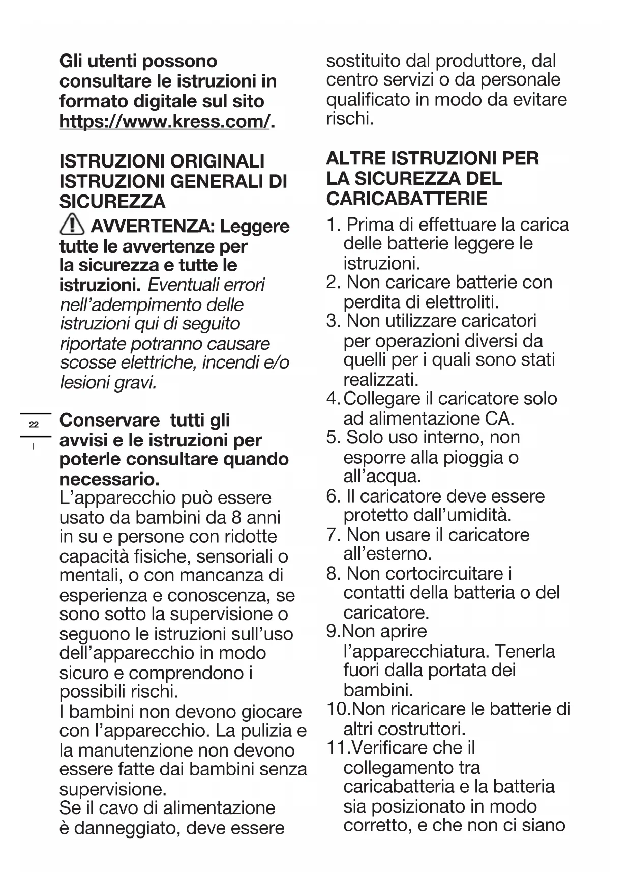 Gli utenti possono consultare le istruzioni in formato digitale sul sito https://www.kress.com/. ISTRUZIONI ORIGINALI