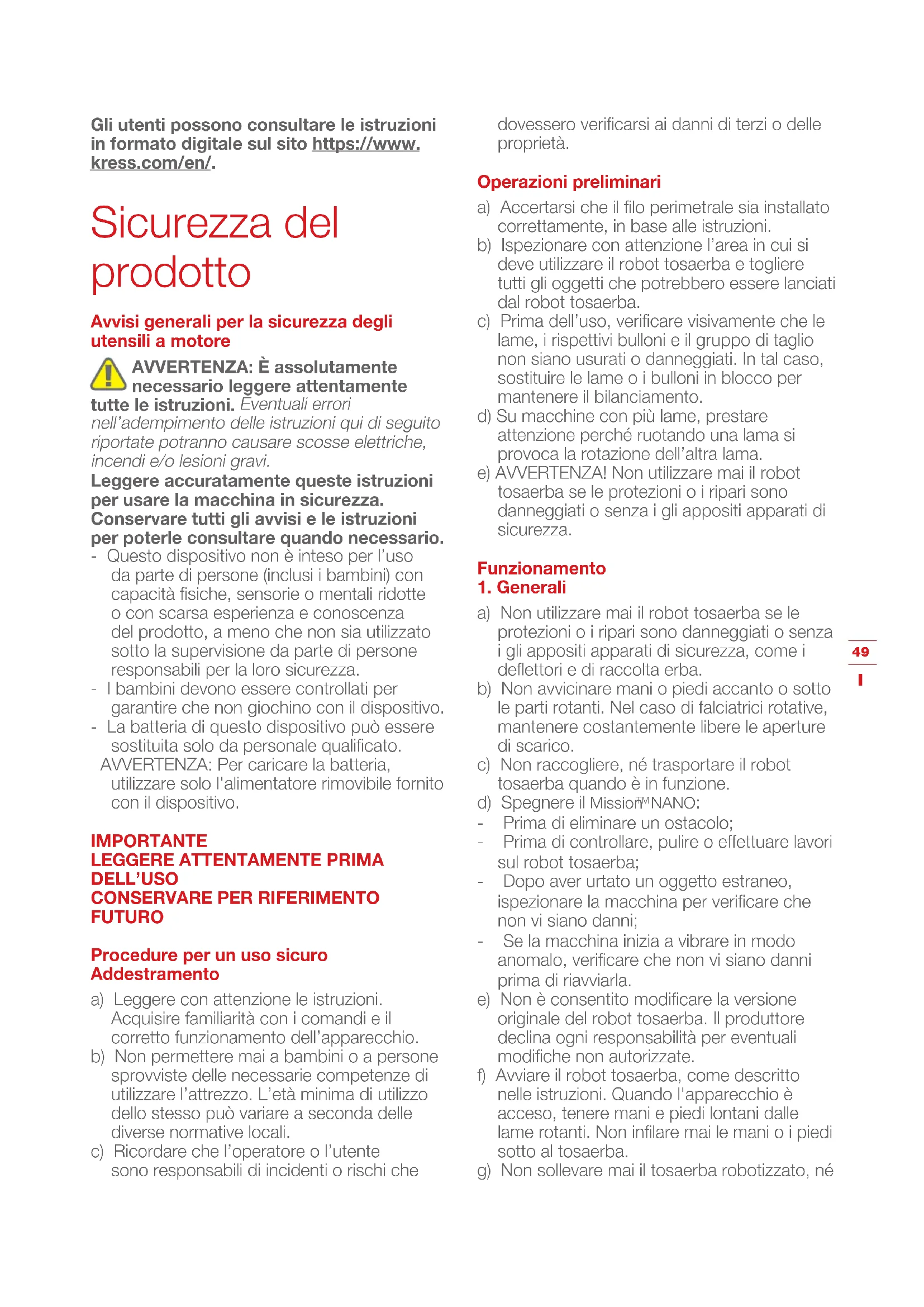 Mission Nano 600 KR101E - Tosaerba robot KRESS - Manuale utente e istruzioni gratuiti