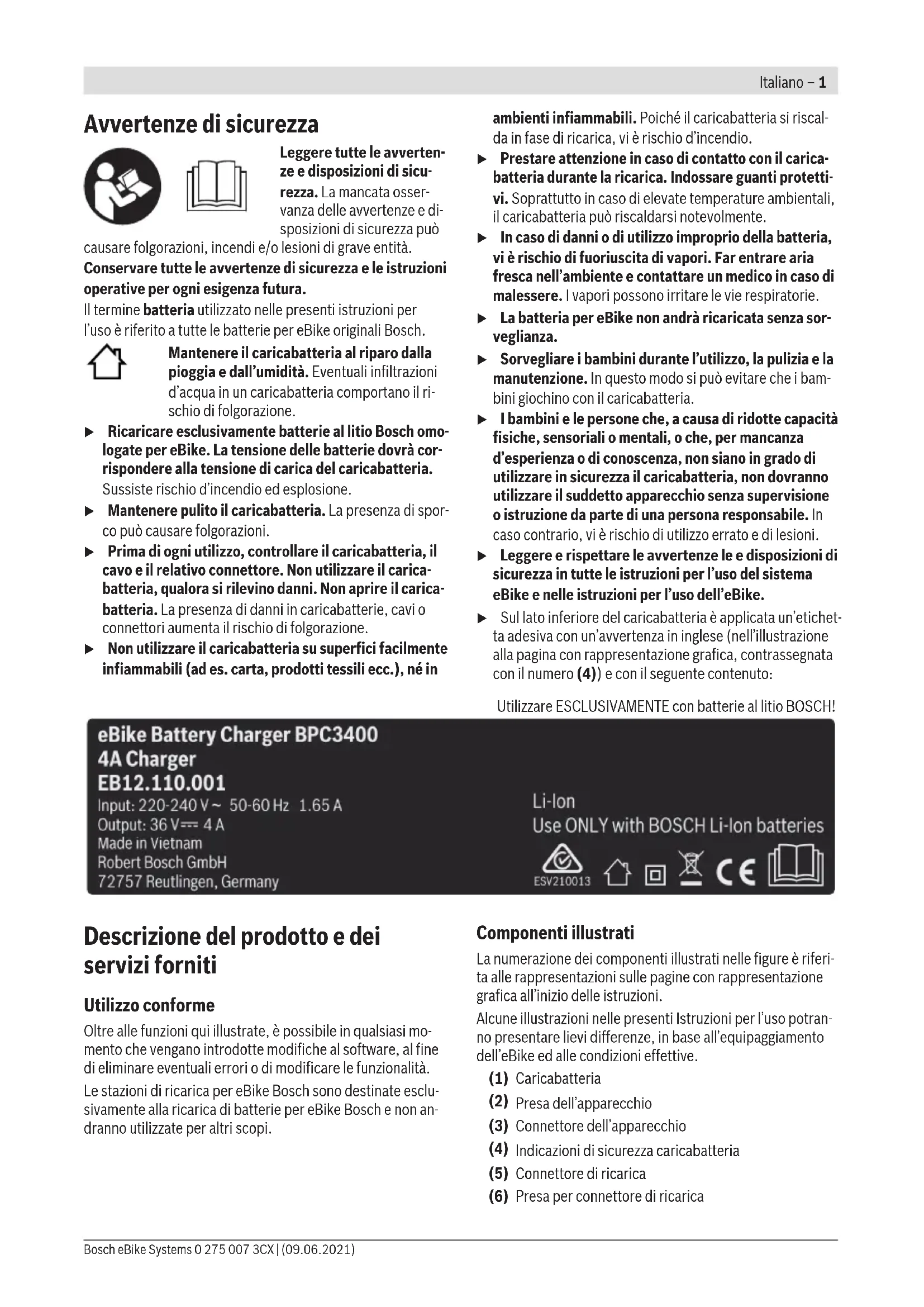 Scarica le istruzioni per il tuo Caricabatterie in formato PDF gratuitamente! Trova il tuo manuale BPC3400 - BOSCH e riprendi in mano il tuo dispositivo elettronico. In questa pagina sono pubblicati tutti i documenti necessari per l'utilizzo del tuo dispositivo. BPC3400 del marchio BOSCH.