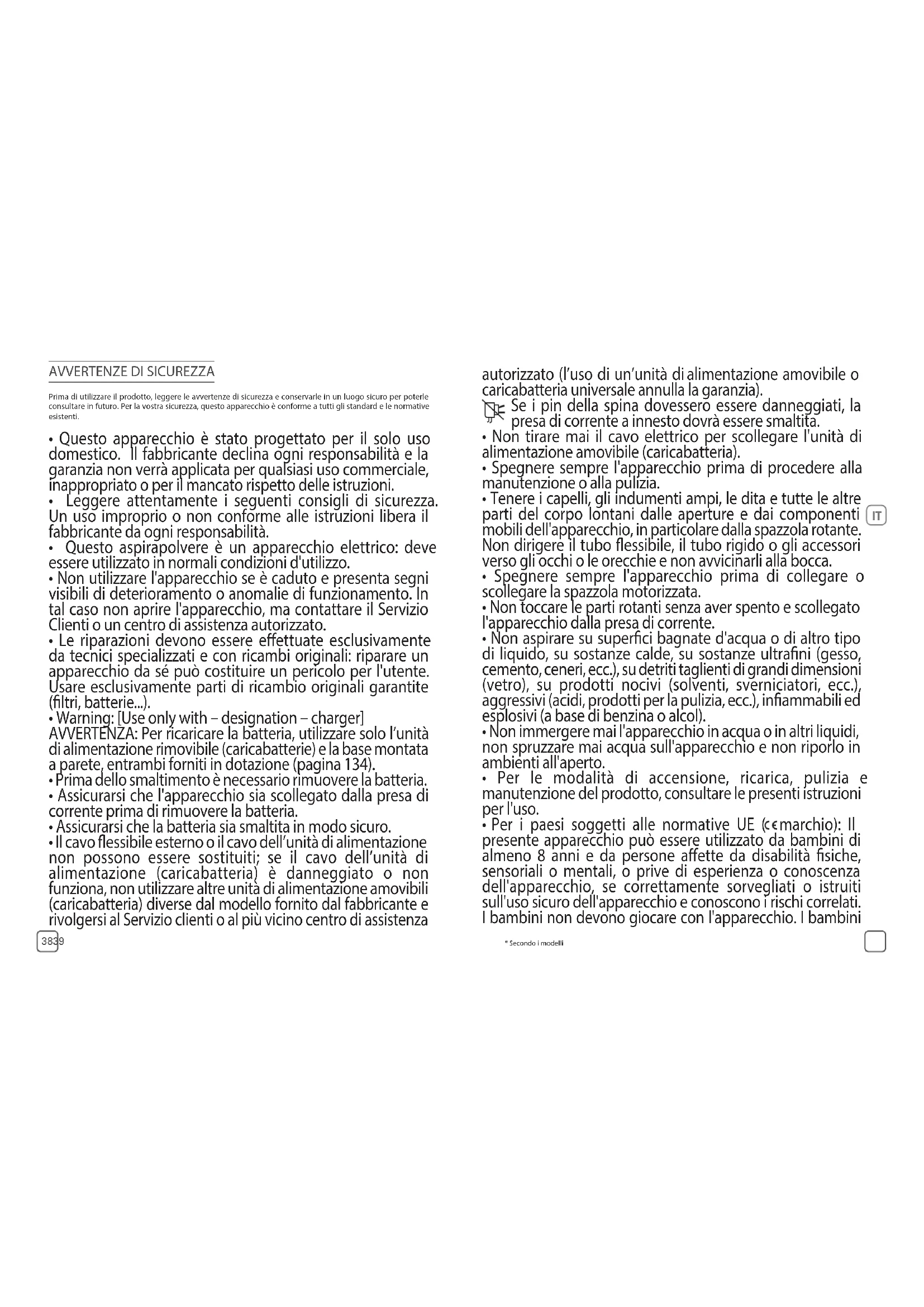 - Questo aspirapolvere è un apparecchio elettrico: deve essere utilizzato in normali condizioni d'utilizzo.