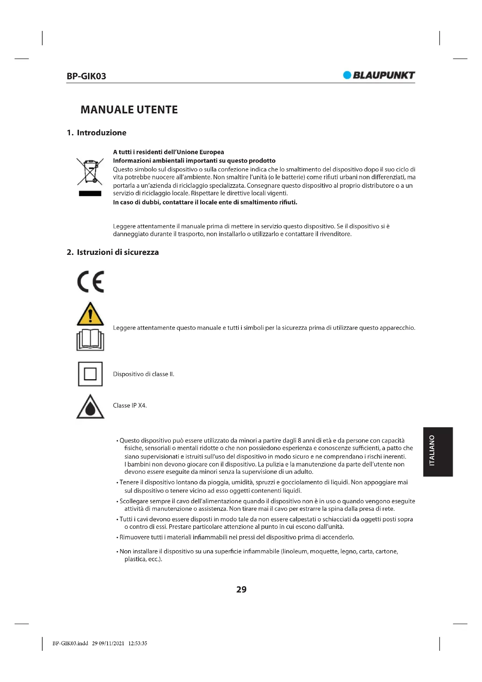 - Conservare questo manuale per eventuali riferimenti futuri. BP-GIK03.indd 30 09/11/2021 12:53:35BP-GIK03