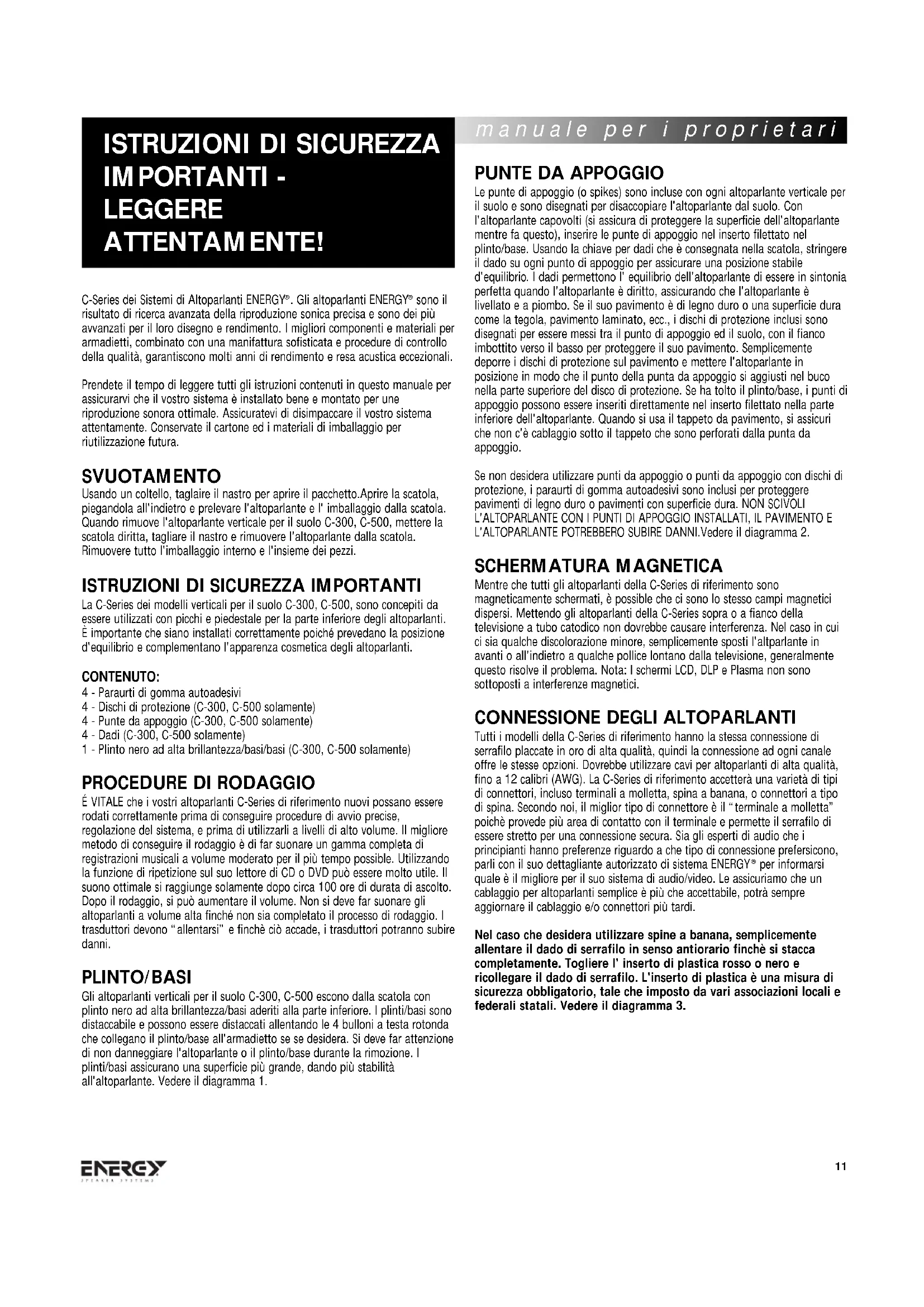 C-500 - Altoparlante Energy - Manuale utente e istruzioni gratuiti
