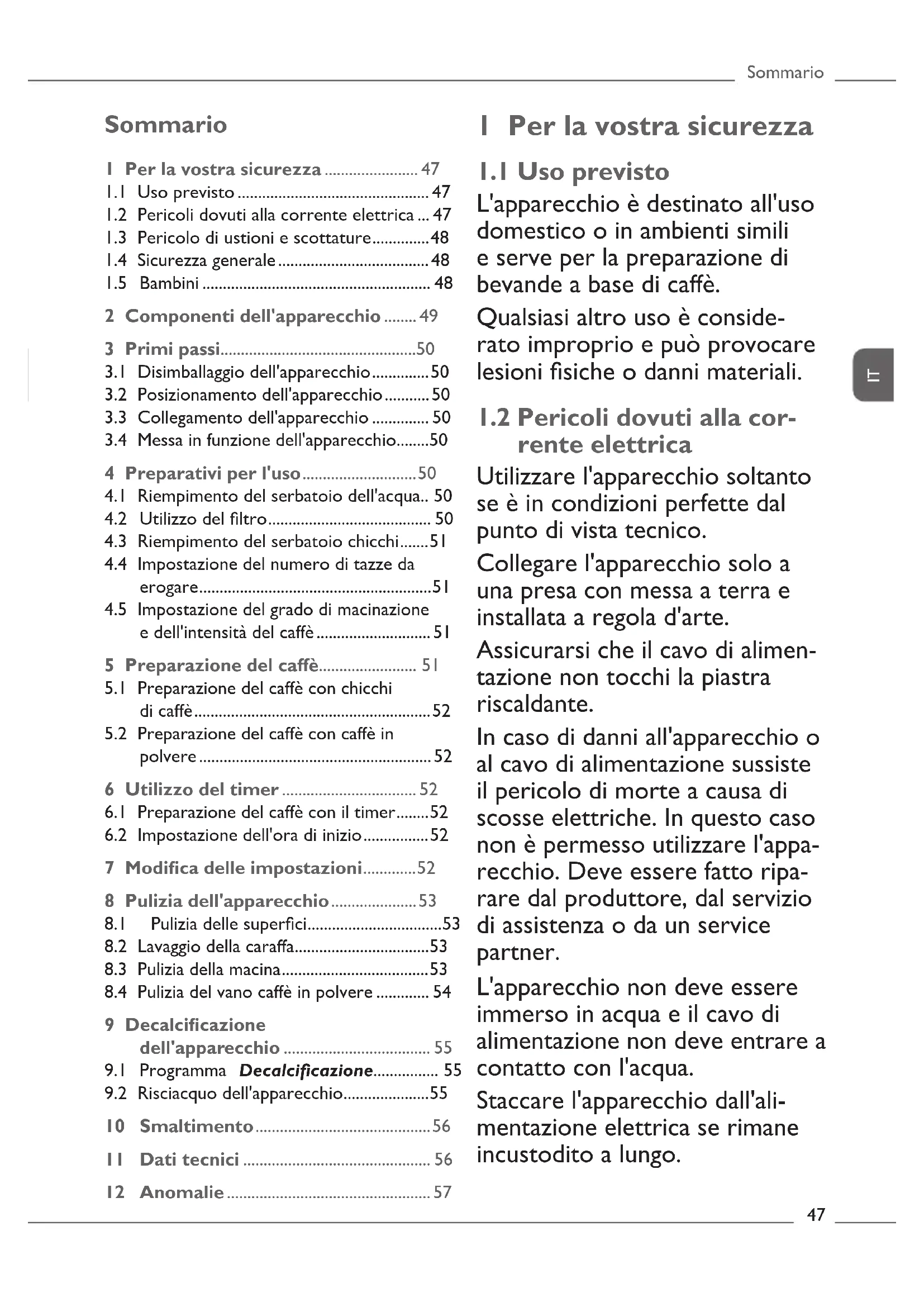8.4 Pulizia del vano caffè in polvere ............. 54
