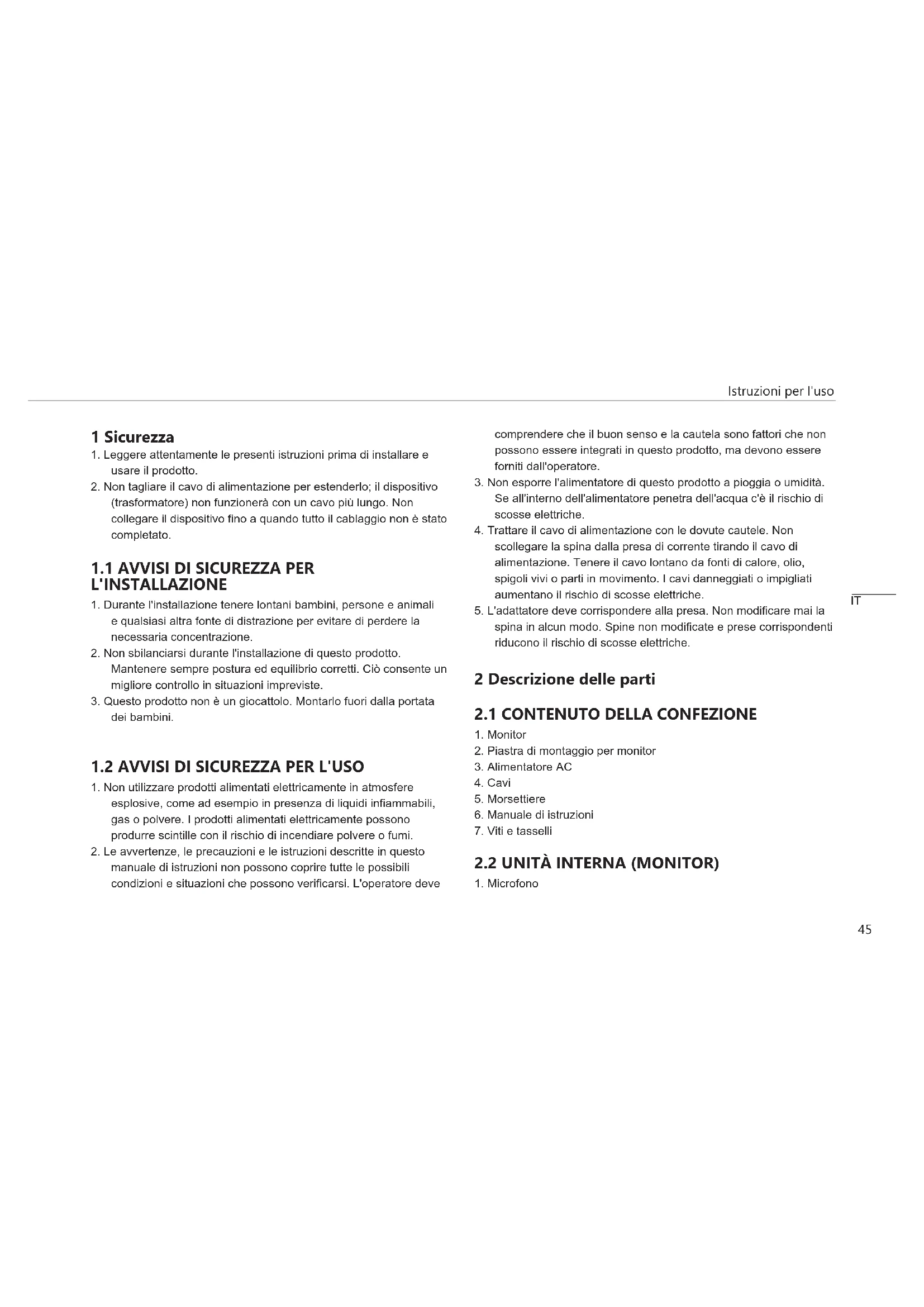 2. Le avvertenze, le precauzioni e le istruzioni descritte in questo