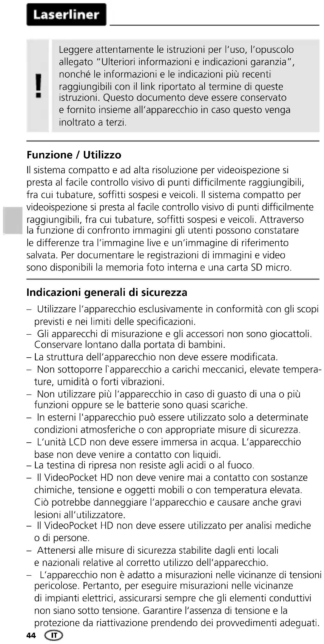 MANUALE UTENTE VideoPocket HD Laserliner